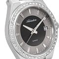 Женские швейцарские часы с минеральным стекломМинеральное стеклоМинеральное стекло представляет собой искусственно выращенный минерал кварца. Такое стекло отличается особой устойчивостью к повреждениям и царапинам. Уступает по некоторым качествам сапфировому стеклу. Adriatica A3804.5114QZ, кварцевый механизм, работающим от батарейки с высокой точностью. Класс водозащиты: 50 метров, позволит защитить корпус от случайных брызг или капель дождя. Корпус и браслет часов изготовлен из стали .Окошко даты находится в положении 3 часа.Стальной браслет на раскладной застёжкеРаскладная застёжкаТакой тип застёжки используется только на браслетах из металла. Она никогда не раскрывается полностью, происходит разделение на 2 и более частей. Раскладывающая застёжка снизит вероятность потери часов к минимуму.. Стрелки с люминесцентным покрытиемЛюминесцентное покрытиеПозволяет считывать показания времени в темноте. Производители наносят на стрелки, часовые индексы, безель или поверхность циферблата светонакопительный состав, дающий холодное свечение..БезельБезельВнешний ободок, закрепляющий стекло. В спортивных часах так называется поворотное кольцо с делениями на циферблате, выполняет роль таймера – замеряет отрезки времени на шкале. Неподвижный безель – элемент декора. Однонаправленно вращающийся безель на дайверских часах позволяет фиксировать моменты погружения и выныривания на поверхность.  инкрустирован цирконами.