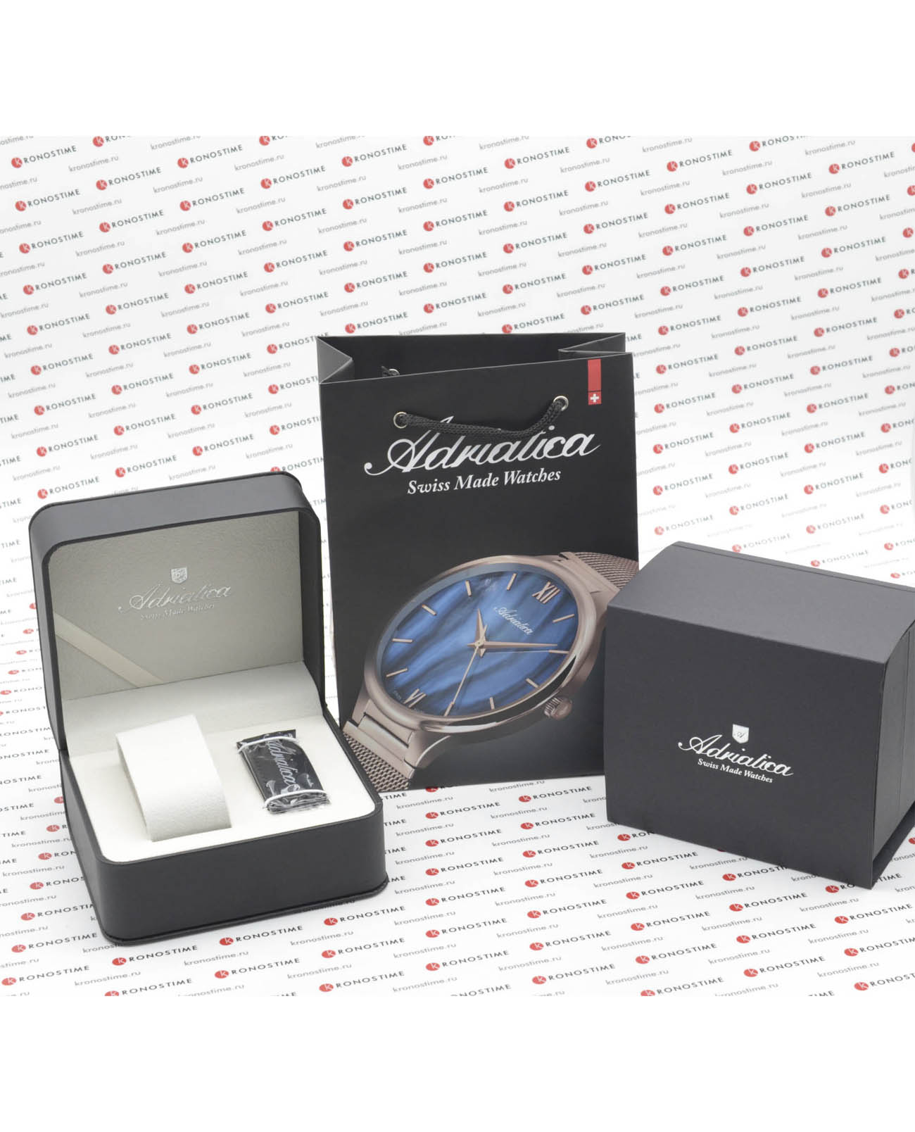 Магазин KronosTime является официальным дилером Adriatica в России. Это означает, что товар только оригинальный, на него действует официальная или сервисная гарантия, дающая право обслуживать часы в авторизованных сервисных центрах.