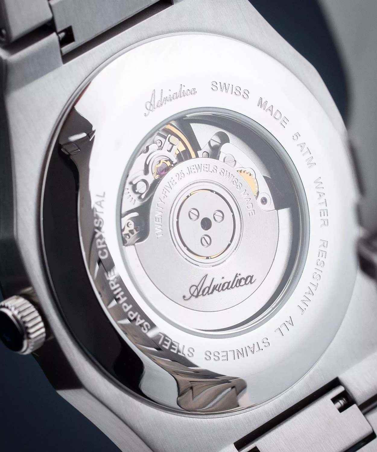 Часы Adriatica Premiere A8326.5114A воплощают в себе элегантность и функциональность, идеально подходящие для современных мужчин, ценящих швейцарское качество. Их черный циферблат защищенный сапфировым стекломСапфировое стеклоПрочный и надёжный материал из кристалла сапфира синтетического происхождения, характеризующийся особой твёрдостью и устойчивостью к царапинам и повреждениям., заключен в корпус из нержавеющей стали диаметром 40 мм и толщиной 10 мм. Эти механические часы с автоподзаводом имеют калибр Ronda 150, который обеспечивает высокую точность, а водозащита 5 ATM делает часы устойчивыми к воздействию воды. Стальной браслет с раскладной застёжкойРаскладная застёжкаТакой тип застёжки используется только на браслетах из металла. Она никогда не раскрывается полностью, происходит разделение на 2 и более частей. Раскладывающая застёжка снизит вероятность потери часов к минимуму. обеспечивает комфортное и надежное ношение. Часы оснащены функцией отображения даты в окошке в положении 3 часа, что добавляет практичности в повседневной жизни. Люминесцентное покрытиеЛюминесцентное покрытиеПозволяет считывать показания времени в темноте. Производители наносят на стрелки, часовые индексы, безель или поверхность циферблата светонакопительный состав, дающий холодное свечение. на стрелках и метках обеспечивает отличную видимость в темноте.
