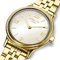 Amalys AMW-199 — женский набор, включающий часы и браслет, выполненный в гармоничном стиле. Круглый корпус диаметром 28 мм изготовлен из нержавеющей стали с PVDPVDУльтратонкое покрытие наносится в технике вакуумного напыления, сочетает в себе нитрид титана особой прочности со слоем золота или оксида хрома. Несёт в себе декоративную или защитную функцию.-покрытием тёплого золотистого оттенка, а браслет шириной 14 мм обеспечивает комфортное прилегание и подчёркивает изящный образ. Защитную функцию выполняет сапфировое стеклоСапфировое стеклоПрочный и надёжный материал из кристалла сапфира синтетического происхождения, характеризующийся особой твёрдостью и устойчивостью к царапинам и повреждениям., устойчивое к царапинам и сохраняющее прозрачность. Механизм — кварцевый, надёжный и точный. Браслет с PVDPVDУльтратонкое покрытие наносится в технике вакуумного напыления, сочетает в себе нитрид титана особой прочности со слоем золота или оксида хрома. Несёт в себе декоративную или защитную функцию.-покрытием снабжён раскладным замкомРаскладной замокДанный вариант застежки используется только на часах с металлическим браслетом. Отличительная особенность такого крепления в том, что длина браслета становится универсальной и вы можете самостоятельно отрегулировать нужный вам размер – застежка просто двигается по браслету часов., что делает ношение удобным и безопасным. Водозащита 5 ATM предохраняет модель от случайных брызг и дождя. Циферблат с римскими индексами и утончённым декоративным узором придаёт часам элегантность, а комплектный браслет завершает цельный и женственный образ.
