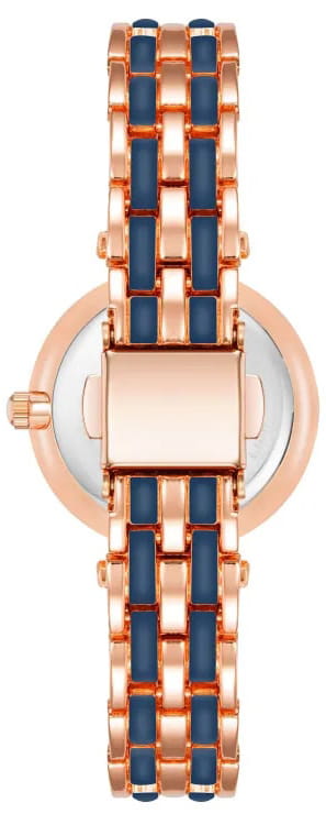 Женские американские часы с минеральным стекломМинеральное стеклоМинеральное стекло представляет собой искусственно выращенный минерал кварца. Такое стекло отличается особой устойчивостью к повреждениям и царапинам. Уступает по некоторым качествам сапфировому стеклу. Anne Klein Metals 3918NVRG, кварцевый механизм с высокой точностью. Класс водозащиты: 30 метров, позволит защитить корпус от случайных брызг или капель дождя. Корпус часов изготовлен из стали с PVD-покрытиемPVDУльтратонкое покрытие наносится в технике вакуумного напыления, сочетает в себе нитрид титана особой прочности со слоем золота или оксида хрома. Несёт в себе декоративную или защитную функцию.. Стальной браслет на раскладной застёжкеРаскладная застёжкаТакой тип застёжки используется только на браслетах из металла. Она никогда не раскрывается полностью, происходит разделение на 2 и более частей. Раскладывающая застёжка снизит вероятность потери часов к минимуму. с PVD-покрытиемPVDУльтратонкое покрытие наносится в технике вакуумного напыления, сочетает в себе нитрид титана особой прочности со слоем золота или оксида хрома. Несёт в себе декоративную или защитную функцию. и вставками эмали.
