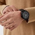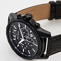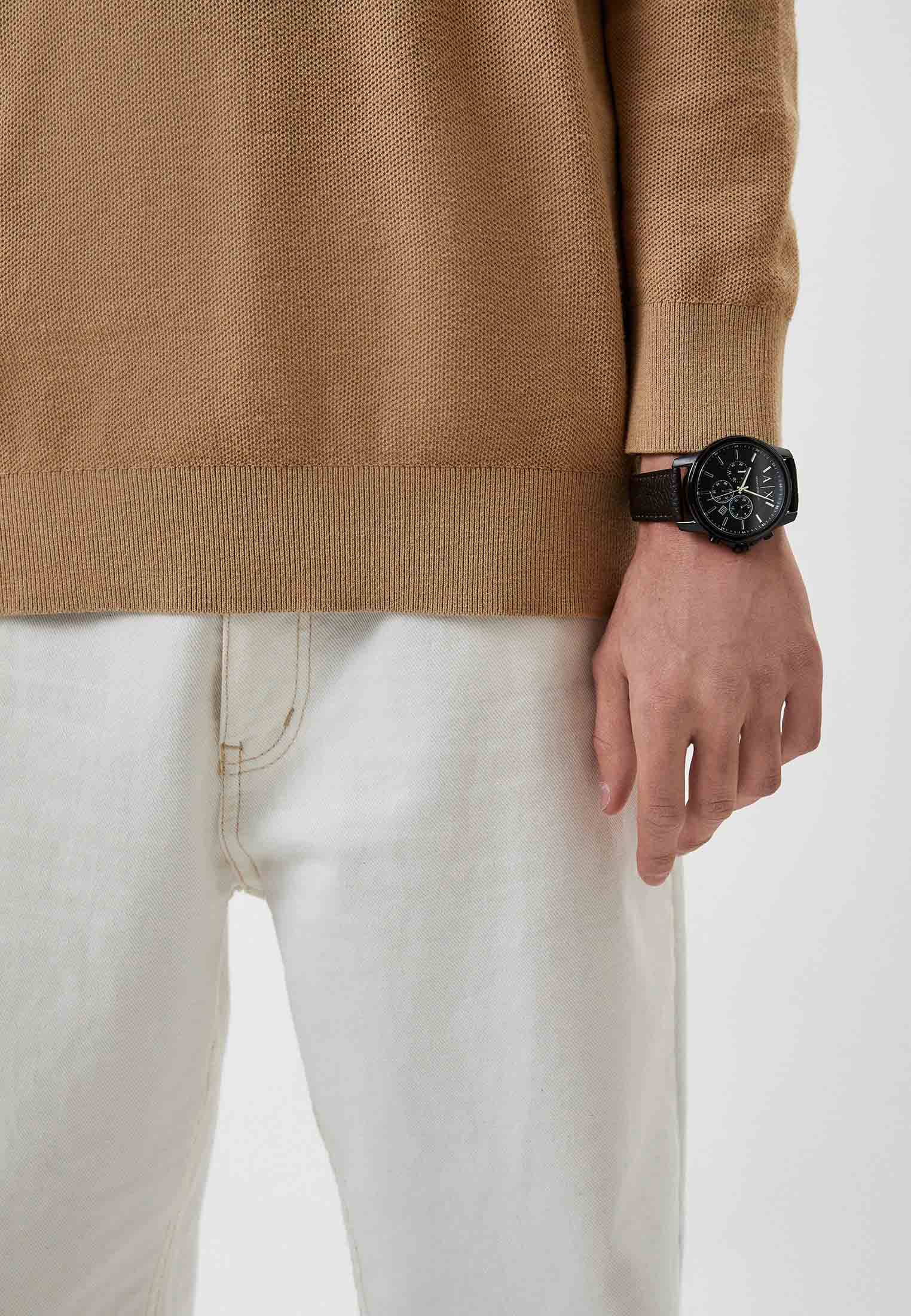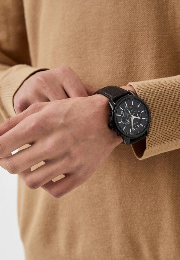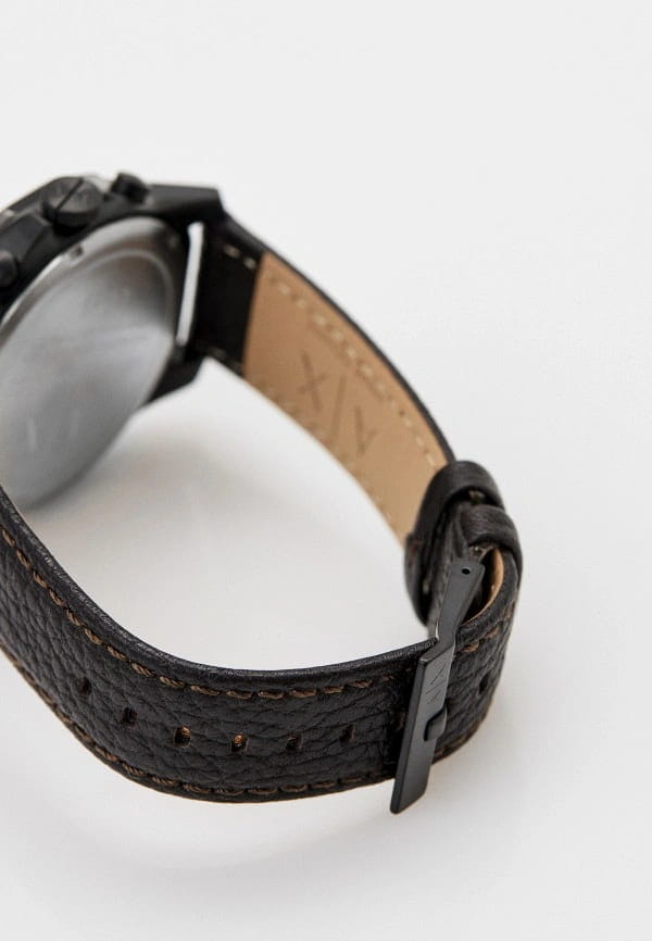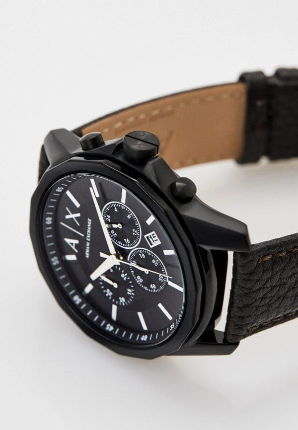 Мужские наручные часы-хронографХронографФункция позволяет измерять отрезки времени с особой точностью: часы, минуты, секунды. Верным признаком хронографа является наличие на циферблате 3 дополнительных окошек-счётчиков. с секундомеромСекундомерСекундоме́р — прибор, способный измерять интервалы времени с точностью до долей секунды. Armani Exchange Banks AX1732, кварцевый механизм с высокой точностью. Класс водозащиты: 50 метров, позволит защитить корпус от случайных брызг или капель дождя. Корпус часов изготовлен из стали с IP-покрытиемIP-покрытиеМетод ионного напыления. Демонстрирует повышенную устойчивость к истиранию, окислению и химическим веществам. Под воздействием высокого давления и температуры около 1500°C молекулы металла надёжно соединяются с частицами корпуса часов. черного цвета. Кожаный ремешок на стандартной застёжке. Минеральное стеклоМинеральное стеклоМинеральное стекло представляет собой искусственно выращенный минерал кварца. Такое стекло отличается особой устойчивостью к повреждениям и царапинам. Уступает по некоторым качествам сапфировому стеклу. устойчивое к мелким механическим повреждениям. Циферблат выполнен по технологии Sunray (солнечные лучи). Метки в виде штрихов. Окошко даты находится между отметками 4 и 5 часов. Заводная головка с защитой.