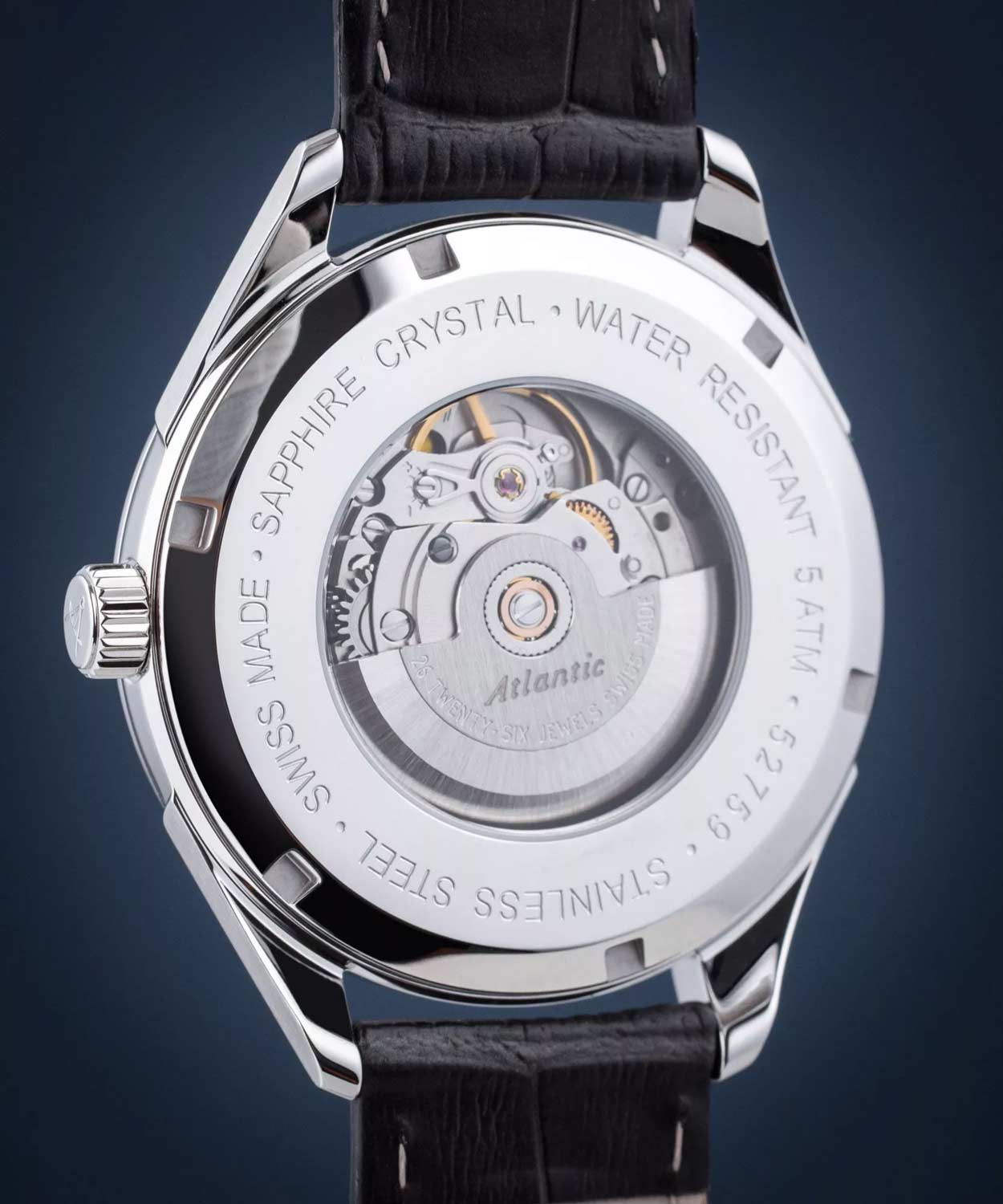 Мужские швейцарские часы Atlantic Worldmaster 1888 52759.41.41S, механизм с высокой точностью. Циферблат часов с сапфировым стекломСапфировое стеклоПрочный и надёжный материал из кристалла сапфира синтетического происхождения, характеризующийся особой твёрдостью и устойчивостью к царапинам и повреждениям., устойчивым к появлению царапин и обладающее высокой прозрачностью. Класс водозащиты: 50 метров, позволит защитить корпус от случайных брызг или капель дождя. Корпус часов изготовлен из нержавеющей стали. Кожаный ремешок на стандартной застёжке. Окошко даты находится в положении 3 часа. Гильошированный циферблат с метками в виде штрихов.