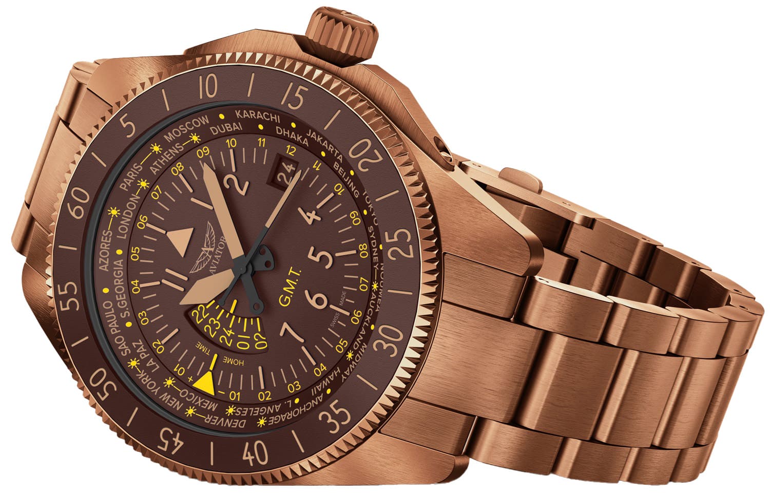 Airacobra GMT — инструментальное сочетание часовой точности, удобной функциональности GMT и авиационной эстетики, предназначенное для тех, кто ценит практичность и стиль в равной мере.