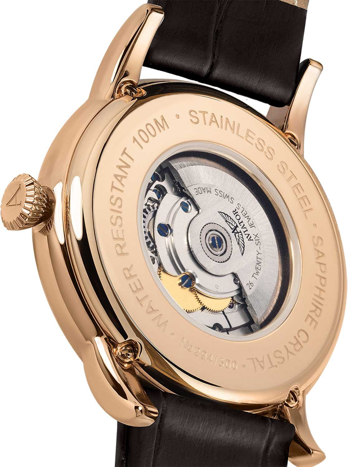 Aviator Douglas Day-Date V.3.20.1.147.4 — швейцарская мужская модель в авиационном стиле с акцентом на функциональность и ретро-эстетику. Корпус диаметром 45 мм выполнен из нержавеющей стали 316L с PVD-покрытиемPVDУльтратонкое покрытие наносится в технике вакуумного напыления, сочетает в себе нитрид титана особой прочности со слоем золота или оксида хрома. Несёт в себе декоративную или защитную функцию., что подчёркивает техническую надёжность в образе часов. Циферблат оформлен в духе Art Deco. В верхней части — изогнутое окошко дня недели, в нижней — классический индикатор даты. Крупные арабские цифры, минутная шкала и стрелки обеспечивают превосходную читаемость. Для удобства в условиях слабого освещения стрелки и метки покрыты люминесцентным покрытиемЛюминесцентное покрытиеПозволяет считывать показания времени в темноте. Производители наносят на стрелки, часовые индексы, безель или поверхность циферблата светонакопительный состав, дающий холодное свечение. Superluminova. Циферблат защищён устойчивым к царапинам сапфировым стекломСапфировое стеклоПрочный и надёжный материал из кристалла сапфира синтетического происхождения, характеризующийся особой твёрдостью и устойчивостью к царапинам и повреждениям. с антибликовым покрытиемАнтибликовое покрытиеСлой оксида металла в 0,13-0,3 микрон, благодаря которому стекло часов не бликует и не отражает свет. Антибликовое покрытие уменьшает отражение света в 10 раз, обеспечивая отличную читаемость показателей циферблата., обеспечивающим чёткое изображение под любыми углами. Механизм — автоматический с функцией автоподзавода, запас хода составляет около 38 часов. Модель дополнена кожаным ремешком, оснащённым надёжной раскладной застёжкойРаскладная застёжкаТакой тип застёжки используется только на браслетах из металла. Она никогда не раскрывается полностью, происходит разделение на 2 и более частей. Раскладывающая застёжка снизит вероятность потери часов к минимуму., а сам корпус защищён от внешних воздействий благодаря водонепроницаемости до 100 метров. Douglas Day‑Date — это идеальное сочетание сдержанного ретро-стиля, высокой читаемости и современной надёжности, достойное место для ценителей пилотских традиций в часовом искусстве. Лимитированная серия.