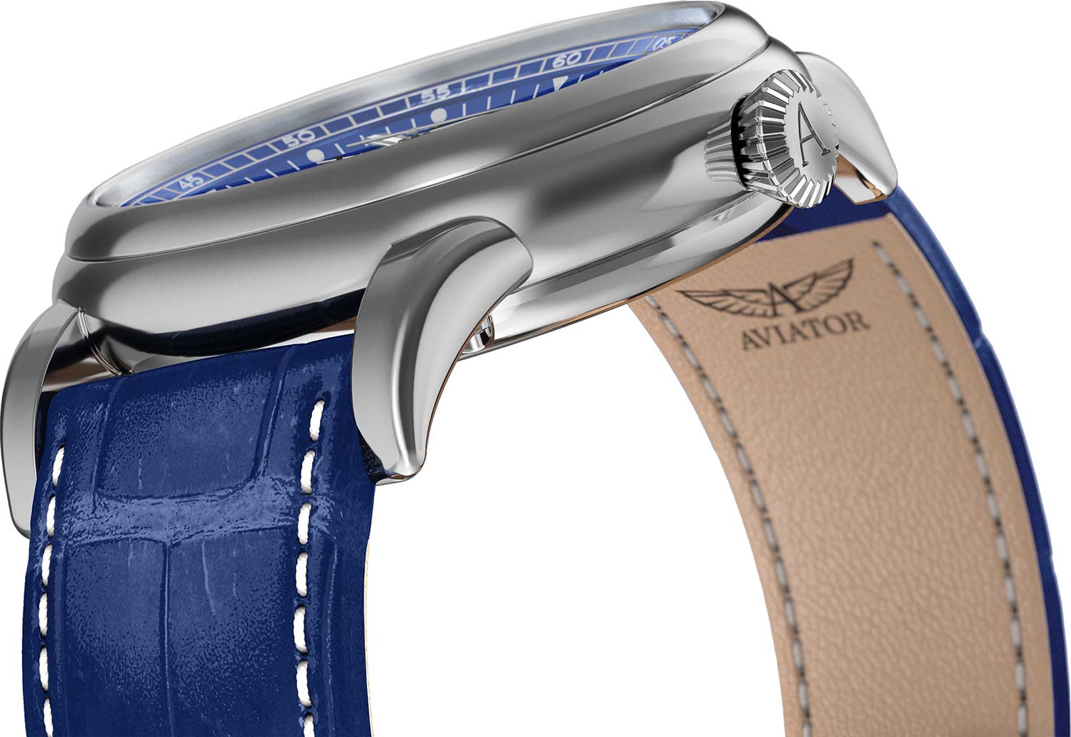 Aviator Douglas Day Date V.3.35.0.276.4 — швейцарские часы в классике авиадизайна, сочетающие безупречную читаемость и высокую надёжность. Лимитированная серия. Корпус диаметром 41,2 мм выполнен из нержавеющей стали 316L. Накладные метки выполнены в виде римских цифр. Окошко даты находится в положении 6 часов. День недели находится в положении 12 часов. Часовые метки и стрелки покрыты люминесцентным покрытиемЛюминесцентное покрытиеПозволяет считывать показания времени в темноте. Производители наносят на стрелки, часовые индексы, безель или поверхность циферблата светонакопительный состав, дающий холодное свечение. Superluminova, позволяющим легко определять время даже в тёмное время суток. Поверхность защищена прочным сапфировым стекломСапфировое стеклоПрочный и надёжный материал из кристалла сапфира синтетического происхождения, характеризующийся особой твёрдостью и устойчивостью к царапинам и повреждениям. с антибликовым покрытием, устойчивым к царапинам. Сердце модели — швейцарский механизм Sellita SW 240-1, известный своей точностью и долговечностью. Водозащита 100 метров, позволит плавать, нырять и заниматься другими водными видами спорта. Завинчивающаяся головка и задняя крышка обеспечивают уверенную ударопрочностьУдаропрочный корпусМеханизм заключён в корпус, выполненный из современных материалов, устойчивых к ударам, механическим повреждениям и падению с высоты: инновационный пластик, карбон, нержавеющая сталь, титан. и надёжную защиту от влаги и пыли. В механизме 26 камней, запас хода до 41 час. Модель дополнена кожаным ремешком с выразительной текстурой и классическим стилем, закреплённым с помощью застёжке-бабочке с кнопкамиЗастёжка "бабочка"Такой вид застёжки дополняется предохранителями, помогающими избежать случайного раскрытия браслета. Обладают изящным исполнением. — для максимального комфорта и лёгкости в повседневном использовании. Модель вдохновлена американским пассажирским самолетом Douglas DC-3, который является одним из лучших самолетов за всю историю авиации. Aviator — это образец лётной точности, инженерной чёткости и сдержанной роскоши, идеально подходящий для тех, кто ценит функциональность и уверенность в каждом элементе.