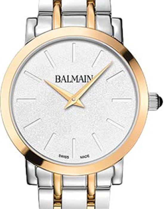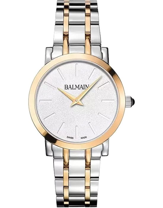 Женские часы Balmain Laelia B4432.39.26 кварцевый механизм с высокой точностью. Сапфировое стеклоСапфировое стеклоПрочный и надёжный материал из кристалла сапфира синтетического происхождения, характеризующийся особой твёрдостью и устойчивостью к царапинам и повреждениям. устойчивое к появлению царапин, обладающее высокой прозрачностью. Корпус изготовлен из нержавеющей стали PVD-покрытиемPVDУльтратонкое покрытие наносится в технике вакуумного напыления, сочетает в себе нитрид титана особой прочности со слоем золота или оксида хрома. Несёт в себе декоративную или защитную функцию.. Класс водозащиты: 50 метров, позволит защитить корпус от случайных брызг или капель дождя. Стальной браслет с PVD-покрытиемPVDУльтратонкое покрытие наносится в технике вакуумного напыления, сочетает в себе нитрид титана особой прочности со слоем золота или оксида хрома. Несёт в себе декоративную или защитную функцию.. на застёжке «бабочка» с кнопкамиЗастёжка "бабочка"Такой вид застёжки дополняется предохранителями, помогающими избежать случайного раскрытия браслета. Обладают изящным исполнением. . БезельБезельВнешний ободок, закрепляющий стекло. В спортивных часах так называется поворотное кольцо с делениями на циферблате, выполняет роль таймера – замеряет отрезки времени на шкале. Неподвижный безель – элемент декора. Однонаправленно вращающийся безель на дайверских часах позволяет фиксировать моменты погружения и выныривания на поверхность. с PVD-покрытиемPVDУльтратонкое покрытие наносится в технике вакуумного напыления, сочетает в себе нитрид титана особой прочности со слоем золота или оксида хрома. Несёт в себе декоративную или защитную функцию..