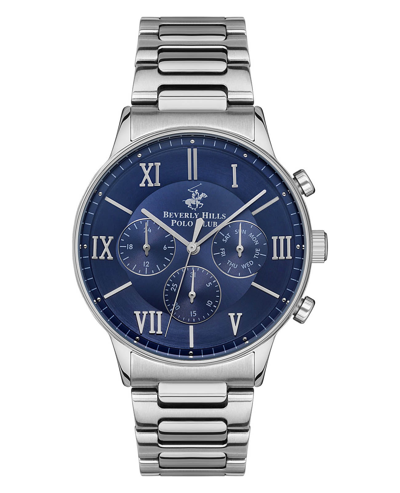 Американские мужские часы с минеральным стекломМинеральное стеклоМинеральное стекло представляет собой искусственно выращенный минерал кварца. Такое стекло отличается особой устойчивостью к повреждениям и царапинам. Уступает по некоторым качествам сапфировому стеклу. и Beverly Hills Polo Club BP3314X.390, кварцевый механизм с высокой точностью. Класс водозащиты: 50 метров, позволит защитить корпус от случайных брызг или капель дождя. Корпус часов изготовлен из стали. Корпус изготовлен из нержавеющей стали с IP-покрытиемIP-покрытиеМетод ионного напыления. Демонстрирует повышенную устойчивость к истиранию, окислению и химическим веществам. Под воздействием высокого давления и температуры около 1500°C молекулы металла надёжно соединяются с частицами корпуса часов.. Браслет с раскладной застёжкойРаскладная застёжкаТакой тип застёжки используется только на браслетах из металла. Она никогда не раскрывается полностью, происходит разделение на 2 и более частей. Раскладывающая застёжка снизит вероятность потери часов к минимуму..