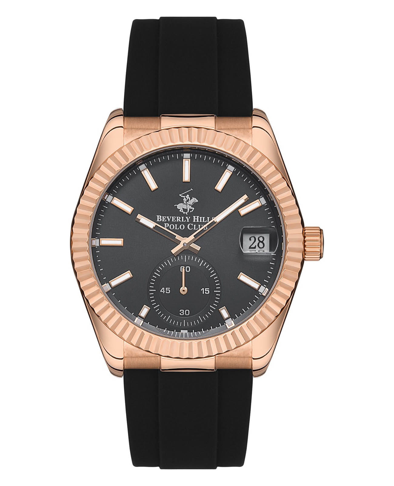 Американские мужские часы Beverly Hills Polo Club BP3325X.461 с минеральным стекломМинеральное стеклоМинеральное стекло представляет собой искусственно выращенный минерал кварца. Такое стекло отличается особой устойчивостью к повреждениям и царапинам. Уступает по некоторым качествам сапфировому стеклу., кварцевый механизм с высокой точностью. Класс водозащиты: 50 метров, позволит защитить корпус от случайных брызг или капель дождя. Корпус часов изготовлен из стали с IP-покрытиемIP-покрытиеМетод ионного напыления. Демонстрирует повышенную устойчивость к истиранию, окислению и химическим веществам. Под воздействием высокого давления и температуры около 1500°C молекулы металла надёжно соединяются с частицами корпуса часов.. Циферблат с люминесцентным покрытиемЛюминесцентное покрытиеПозволяет считывать показания времени в темноте. Производители наносят на стрелки, часовые индексы, безель или поверхность циферблата светонакопительный состав, дающий холодное свечение. стрелок и меток. Силиконовый ремешок с классической застёжкой. Окошко даты находятся в положении 3 часа.