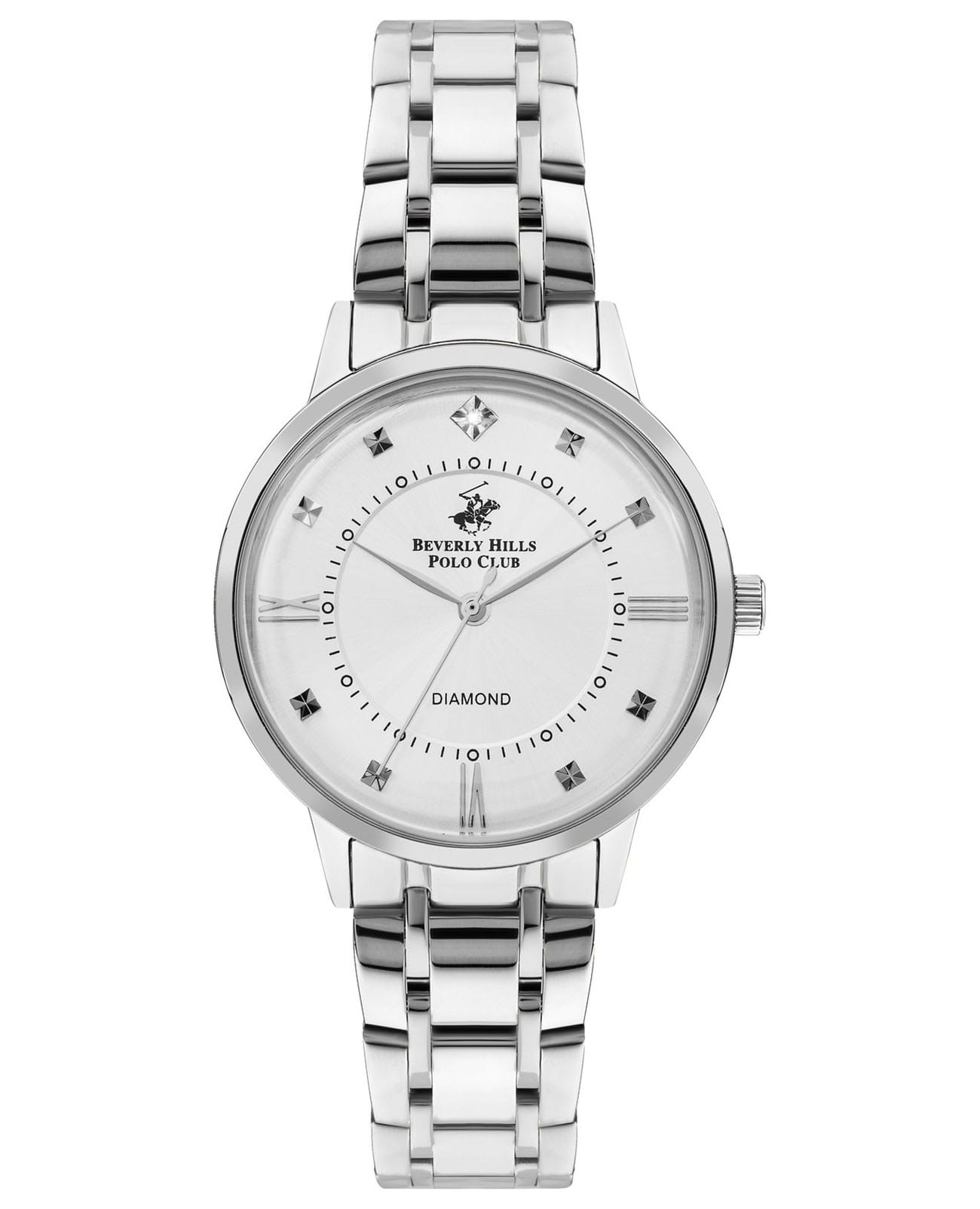 Американские женские часы с минеральным стекломМинеральное стеклоМинеральное стекло представляет собой искусственно выращенный минерал кварца. Такое стекло отличается особой устойчивостью к повреждениям и царапинам. Уступает по некоторым качествам сапфировому стеклу. Beverly Hills Polo Club BP3388C.330, кварцевый механизм с высокой точностью. Корпус и браслет часов изготовлены из нержавеющей стали. Циферблат украшен бриллиантом. Класс водозащиты: 50 метров, позволит защитить корпус от случайных брызг или капель дождя. Стальной браслет на раскладной застёжкеРаскладная застёжкаТакой тип застёжки используется только на браслетах из металла. Она никогда не раскрывается полностью, происходит разделение на 2 и более частей. Раскладывающая застёжка снизит вероятность потери часов к минимуму..