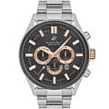 Американские мужские часы Beverly Hills Polo Club BP3395X.360. Минеральное стеклоМинеральное стеклоМинеральное стекло представляет собой искусственно выращенный минерал кварца. Такое стекло отличается особой устойчивостью к повреждениям и царапинам. Уступает по некоторым качествам сапфировому стеклу. устойчивое к появлению царапин, обладающее высокой прозрачностью. Класс водозащиты: 50 метров, позволит защитить корпус от случайных брызг или капель дождя. Корпус часов изготовлен из стали. Стальной браслет на раскладной застёжкеРаскладная застёжкаТакой тип застёжки используется только на браслетах из металла. Она никогда не раскрывается полностью, происходит разделение на 2 и более частей. Раскладывающая застёжка снизит вероятность потери часов к минимуму.. Стрелки и метки с люминесцентным покрытиемЛюминесцентное покрытиеПозволяет считывать показания времени в темноте. Производители наносят на стрелки, часовые индексы, безель или поверхность циферблата светонакопительный состав, дающий холодное свечение.. Второй часовой поясВторой часовой поясФункция, позволяющая отображать время двух часовых поясов одновременно.. Окошко даты находится в положении между 4 и 5 часов.