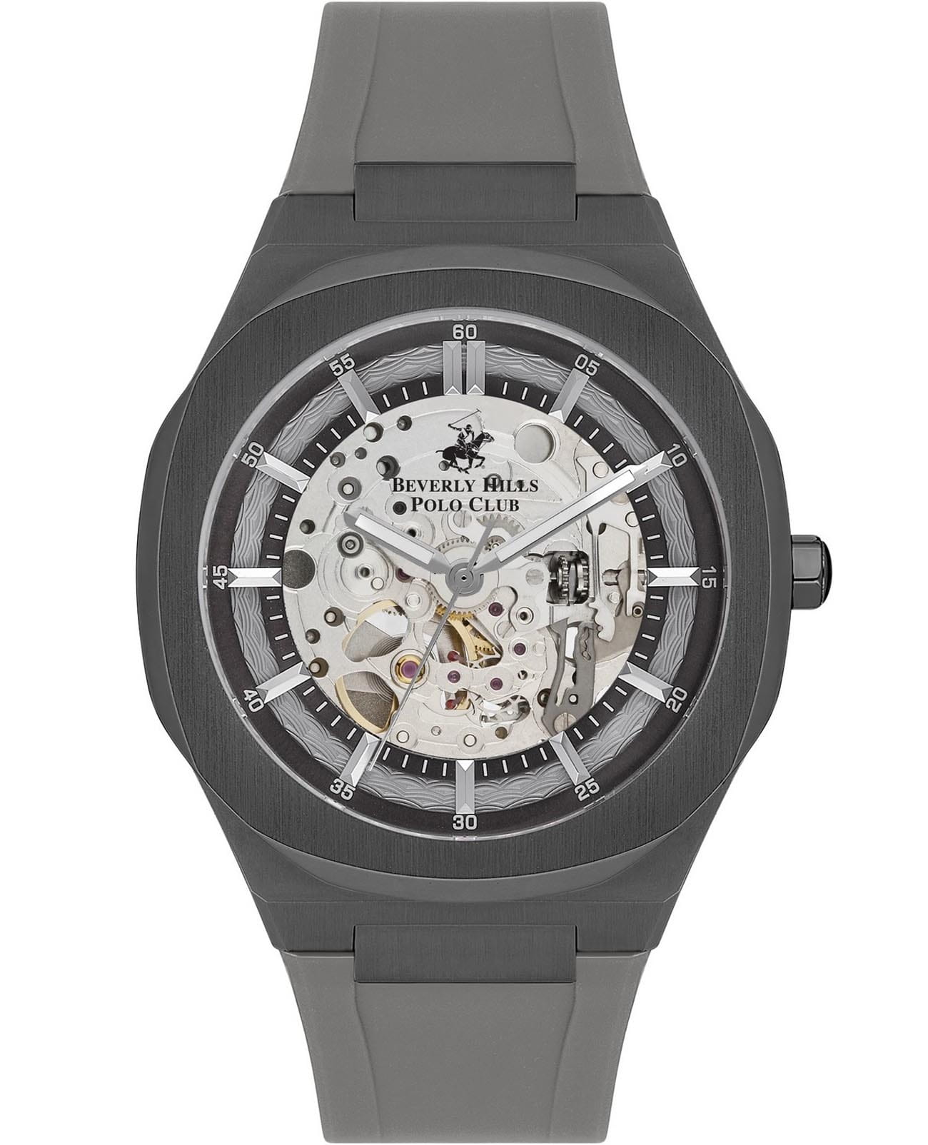 Американские мужские часы-скелетоны Beverly Hills Polo Club BP3543X.066 с надёжным автоматическим механизмом. Минеральное стеклоМинеральное стеклоМинеральное стекло представляет собой искусственно выращенный минерал кварца. Такое стекло отличается особой устойчивостью к повреждениям и царапинам. Уступает по некоторым качествам сапфировому стеклу. устойчивое к появлению царапин, обладающее высокой прозрачностью. Класс водозащиты: 30 метров, позволит защитить корпус от случайных брызг или капель дождя. Корпус часов изготовлен из нержавеющей стали с IP-покрытиемIP-покрытиеМетод ионного напыления. Демонстрирует повышенную устойчивость к истиранию, окислению и химическим веществам. Под воздействием высокого давления и температуры около 1500°C молекулы металла надёжно соединяются с частицами корпуса часов.. Каучуковый ремешок на стандартной застёжке. Класс водозащиты: 30 метров, позволит защитить корпус от случайных брызг или капель дождя. Стрелки и метки с люминесцентным покрытиемЛюминесцентное покрытиеПозволяет считывать показания времени в темноте. Производители наносят на стрелки, часовые индексы, безель или поверхность циферблата светонакопительный состав, дающий холодное свечение..