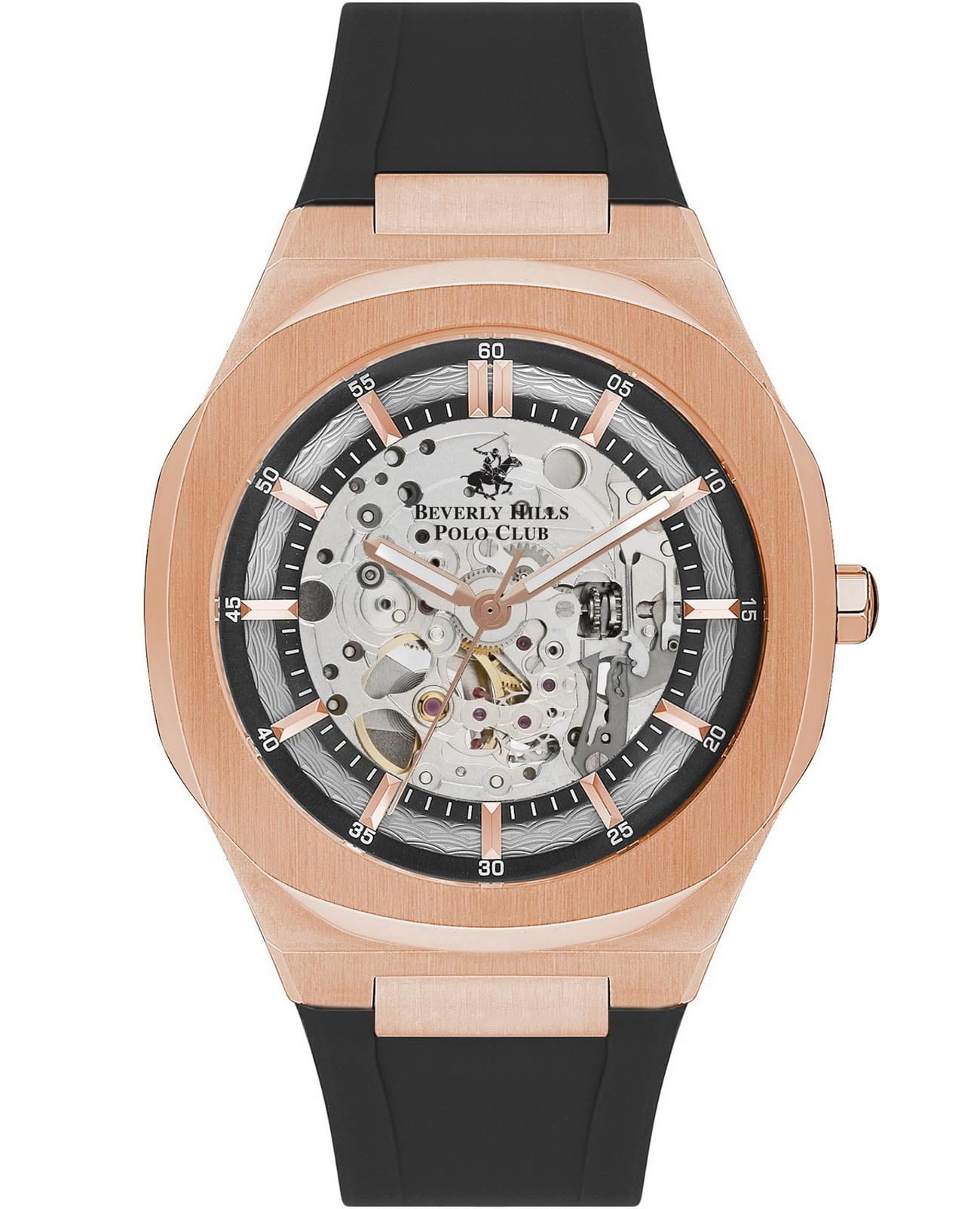 Американские мужские часы-скелетоны Beverly Hills Polo Club BP3543X.451 с надёжным автоматическим механизмом. Минеральное стеклоМинеральное стеклоМинеральное стекло представляет собой искусственно выращенный минерал кварца. Такое стекло отличается особой устойчивостью к повреждениям и царапинам. Уступает по некоторым качествам сапфировому стеклу. устойчивое к появлению царапин, обладающее высокой прозрачностью. Класс водозащиты: 30 метров, позволит защитить корпус от случайных брызг или капель дождя. Корпус часов изготовлен из нержавеющей стали с IP-покрытиемIP-покрытиеМетод ионного напыления. Демонстрирует повышенную устойчивость к истиранию, окислению и химическим веществам. Под воздействием высокого давления и температуры около 1500°C молекулы металла надёжно соединяются с частицами корпуса часов.. Каучуковый ремешок на стандартной застёжке. Класс водозащиты: 30 метров, позволит защитить корпус от случайных брызг или капель дождя. Стрелки и метки с люминесцентным покрытиемЛюминесцентное покрытиеПозволяет считывать показания времени в темноте. Производители наносят на стрелки, часовые индексы, безель или поверхность циферблата светонакопительный состав, дающий холодное свечение..