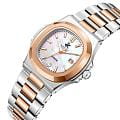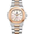 Американские женские часы Beverly Hills Polo Club BP3780X.520 - это стильный женский аксессуар, который сочетает элегантный дизайн и практичность. Корпус выполнен из нержавеющей стали серебристого цвета, диаметром 33,5 мм, что обеспечивает долговечность и утончённый внешний вид. Надежное минеральное стеклоМинеральное стеклоМинеральное стекло представляет собой искусственно выращенный минерал кварца. Такое стекло отличается особой устойчивостью к повреждениям и царапинам. Уступает по некоторым качествам сапфировому стеклу. с сапфировым покрытием защищает циферблат от царапин и обеспечивает долговечность. Метки в виде штрихов, в позиции "6 часов" инкрустирован синтетический бриллиант. Неподвижный безельБезельВнешний ободок, закрепляющий стекло. В спортивных часах так называется поворотное кольцо с делениями на циферблате, выполняет роль таймера – замеряет отрезки времени на шкале. Неподвижный безель – элемент декора. Однонаправленно вращающийся безель на дайверских часах позволяет фиксировать моменты погружения и выныривания на поверхность. с IP-покрытиемIP-покрытиеМетод ионного напыления. Демонстрирует повышенную устойчивость к истиранию, окислению и химическим веществам. Под воздействием высокого давления и температуры около 1500°C молекулы металла надёжно соединяются с частицами корпуса часов. цвета розового золота. Модель оснащена кварцевым механизмом, обеспечивающим высокую точность хода. Стальной браслет на застёжке-бабочке с кнопкамиЗастёжка "бабочка"Такой вид застёжки дополняется предохранителями, помогающими избежать случайного раскрытия браслета. Обладают изящным исполнением. обеспечивает комфортное ношение. Стрелки и метки оснащены люминесцентным покрытиемЛюминесцентное покрытиеПозволяет считывать показания времени в темноте. Производители наносят на стрелки, часовые индексы, безель или поверхность циферблата светонакопительный состав, дающий холодное свечение., обеспечивающим отличную видимость даже при слабом освещении. Окошко даты находится в положении 3 часа. Водозащита 30 метров позволит защитить корпус от случайных брызг или капель дождя. Эта модель – отличный выбор для тех, кто ищет сочетание стиля, качества и функциональности. Часы станут не только полезным аксессуаром, но и выразительным элементом вашего имиджа.