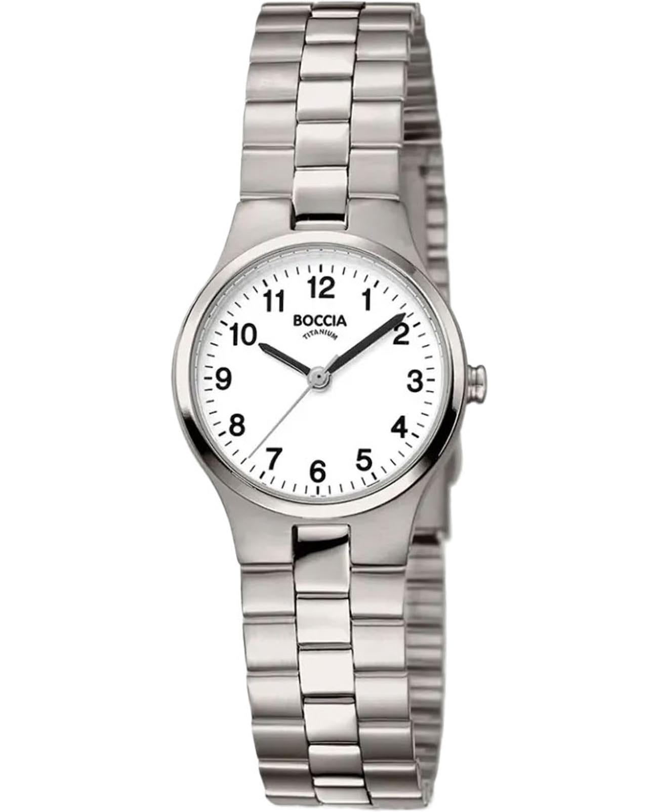 Женские наручные часы Boccia Titanium 3082-06 с надёжным кварцевым механизмом. Корпус часов изготовлен из титана. Титановый браслет на раскладной застёжкеРаскладная застёжкаТакой тип застёжки используется только на браслетах из металла. Она никогда не раскрывается полностью, происходит разделение на 2 и более частей. Раскладывающая застёжка снизит вероятность потери часов к минимуму.. Минеральное стеклоМинеральное стеклоМинеральное стекло представляет собой искусственно выращенный минерал кварца. Такое стекло отличается особой устойчивостью к повреждениям и царапинам. Уступает по некоторым качествам сапфировому стеклу. устойчивое к мелким механическим повреждениям. Класс водозащиты: 50 метров, позволит защитить корпус от случайных брызг или капель дождя.