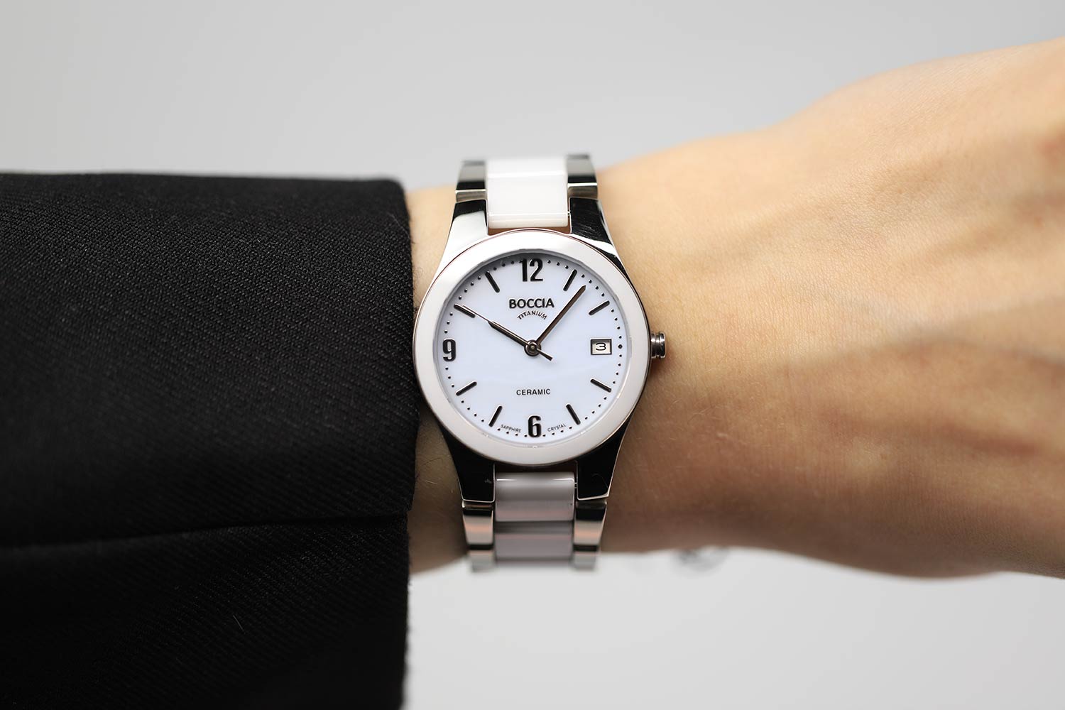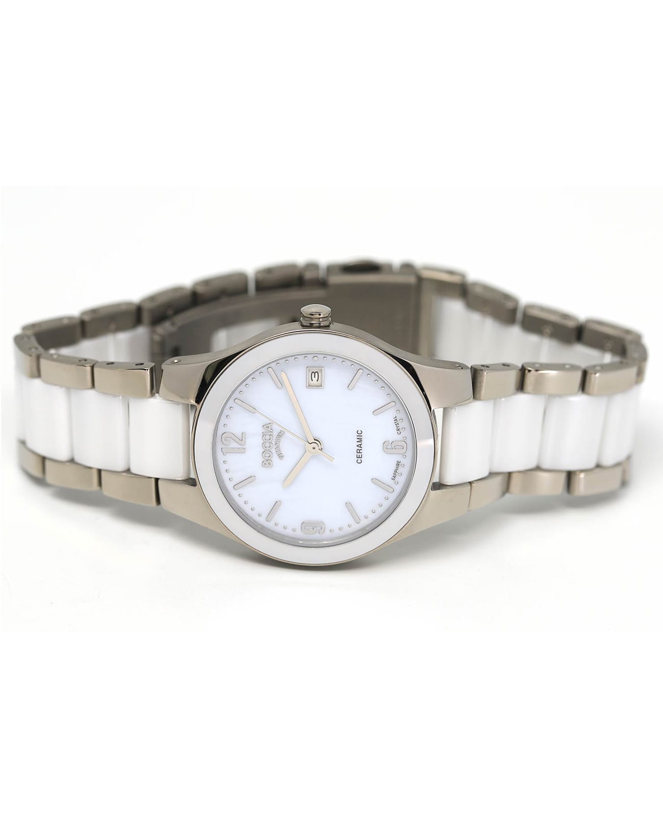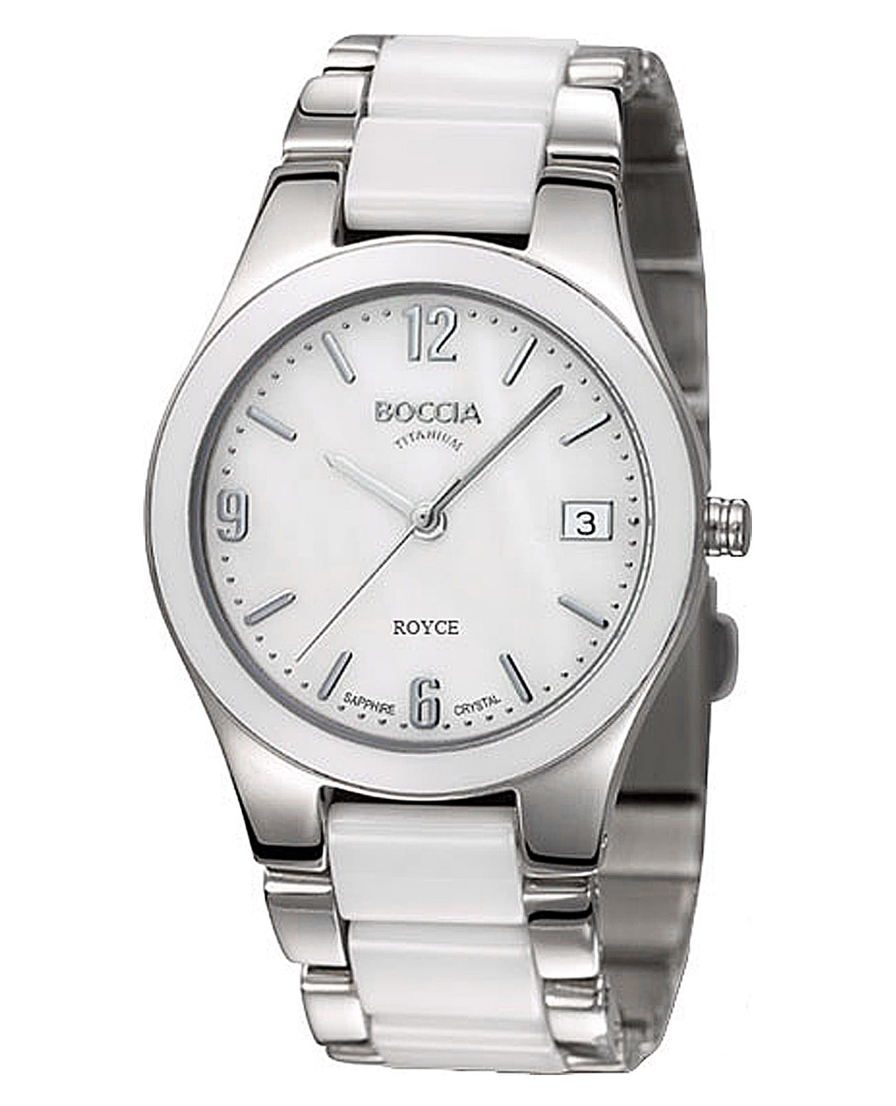 Женские немецкие титановые часы Boccia Titanium Circle-Oval 3189-01, кварцевый механизм с высокой точностью. Сапфировое стеклоСапфировое стеклоПрочный и надёжный материал из кристалла сапфира синтетического происхождения, характеризующийся особой твёрдостью и устойчивостью к царапинам и повреждениям. устойчивое к появлению царапин, обладающее высокой прозрачностью. Корпус изготовлен из титана. Неподвижный безельБезельВнешний ободок, закрепляющий стекло. В спортивных часах так называется поворотное кольцо с делениями на циферблате, выполняет роль таймера – замеряет отрезки времени на шкале. Неподвижный безель – элемент декора. Однонаправленно вращающийся безель на дайверских часах позволяет фиксировать моменты погружения и выныривания на поверхность. из керамикиВысокотехнологичная керамикаИнновационный запатентованный Rado материал с гладкой или матовой поверхностью. Керамика за счёт кристаллической структуры обладает повышенной устойчивостью от возникновения царапин. Материал способен принимать температуру тела человека, обеспечивая невероятный комфорт при ношении.. Циферблат с метками в виде арабских цифр. Окошко даты в положении 3 часов. Класс водозащиты: 50 метров, позволит защитить корпус от случайных брызг или капель дождя. Совместный браслет из титана и керамикиВысокотехнологичная керамикаИнновационный запатентованный Rado материал с гладкой или матовой поверхностью. Керамика за счёт кристаллической структуры обладает повышенной устойчивостью от возникновения царапин. Материал способен принимать температуру тела человека, обеспечивая невероятный комфорт при ношении. на раскладной застёжкеРаскладная застёжкаТакой тип застёжки используется только на браслетах из металла. Она никогда не раскрывается полностью, происходит разделение на 2 и более частей. Раскладывающая застёжка снизит вероятность потери часов к минимуму..