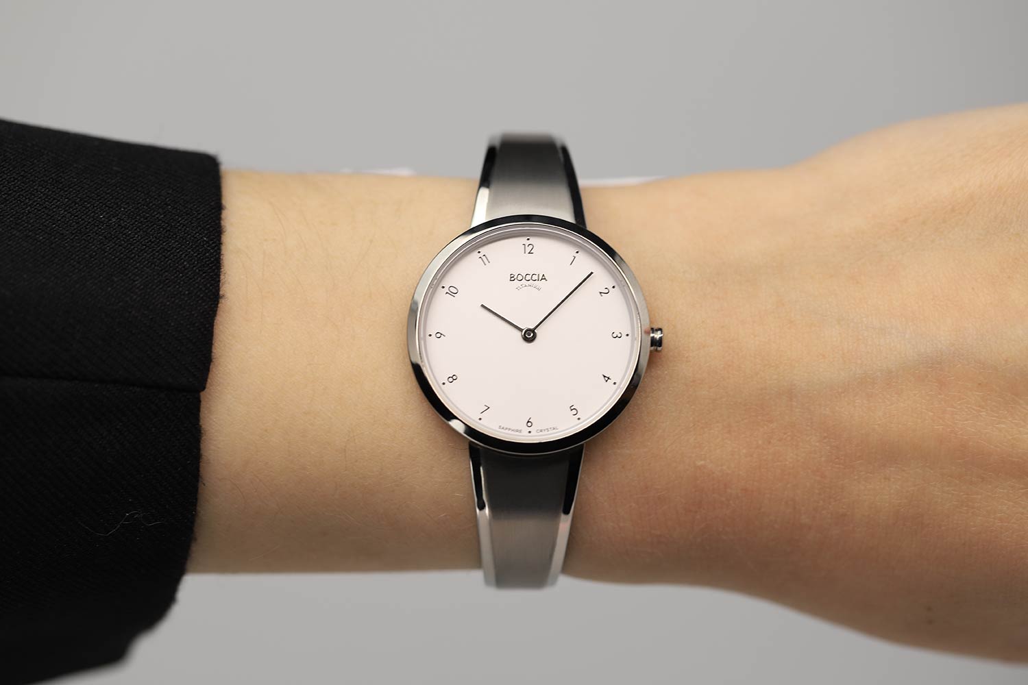 Женские немецкие титановые часы Boccia Titanium 3325-01, кварцевый механизм с высокой точностью. Класс водозащиты: 30 метров, позволит защитить корпус от случайных брызг или капель дождя. Корпус часов изготовлен из стали, цвета.