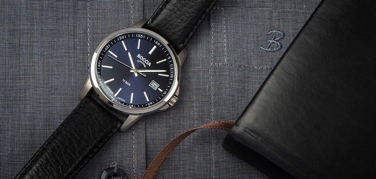 Мужские немецкие титановые часы Boccia Titanium 3633-01, кварцевый механизм с высокой точностью. Минеральное стеклоМинеральное стеклоМинеральное стекло представляет собой искусственно выращенный минерал кварца. Такое стекло отличается особой устойчивостью к повреждениям и царапинам. Уступает по некоторым качествам сапфировому стеклу. устойчивое к появлению царапин, обладающее высокой прозрачностью. Корпус изготовлен из титана. Класс водозащиты: 100 метров, позволит плавать, нырять и заниматься другими водными видами спорта. Кожаный ремешок на стандартной застёжке. Стрелки и метки с люминесцентным покрытиемЛюминесцентное покрытиеПозволяет считывать показания времени в темноте. Производители наносят на стрелки, часовые индексы, безель или поверхность циферблата светонакопительный состав, дающий холодное свечение..