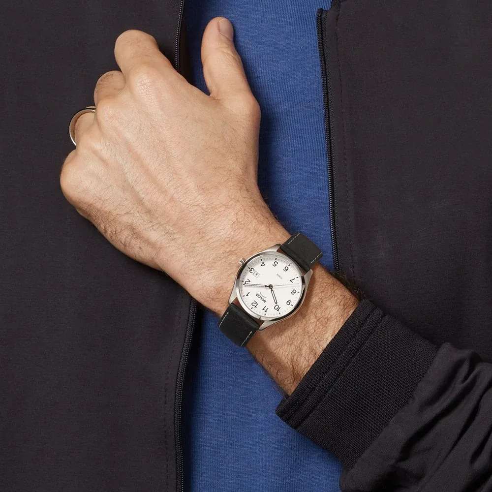 Часы Boccia 3669-01 представляют собой идеальное сочетание стиля и функциональности для современного мужчины. Оснащенные надежным кварцевым механизмом Miyota GR12, они обеспечивают высокую точность хода. На белом циферблате с арабской индикацией времени расположены центральные часовая, минутная и секундная стрелки, а также апертура даты в положении "3 часа", что делает использование этих часов еще более удобным. Корпус часов имеет круглый дизайн и выполнен из суперлегкого титана, что обеспечивает комфорт и легкость при ношении. Диаметр корпуса составляет 39 мм, что делает часы универсальными и подходящими для любого запястья. Стрелки часов покрыты люминесцентным покрытиемЛюминесцентное покрытиеПозволяет считывать показания времени в темноте. Производители наносят на стрелки, часовые индексы, безель или поверхность циферблата светонакопительный состав, дающий холодное свечение., которое мягко светится в темноте, освещая путь даже в самых загадочных сумерках. Черный кожаный ремешок с классической застежкой добавляет элегантности и обеспечивает надежную фиксацию на руке. Часы защищены прочным минеральным стекломМинеральное стеклоМинеральное стекло представляет собой искусственно выращенный минерал кварца. Такое стекло отличается особой устойчивостью к повреждениям и царапинам. Уступает по некоторым качествам сапфировому стеклу., устойчивым к мелким механическим повреждениям, что сохраняет их безупречный вид при повседневном использовании. Водостойкость модели составляет WR 100, что позволяет использовать их при плавании без погружения, не беспокоясь о сохранности механизма.