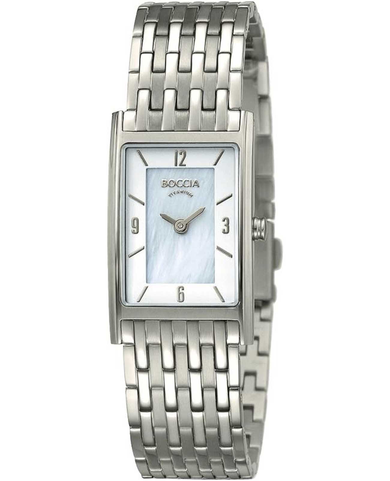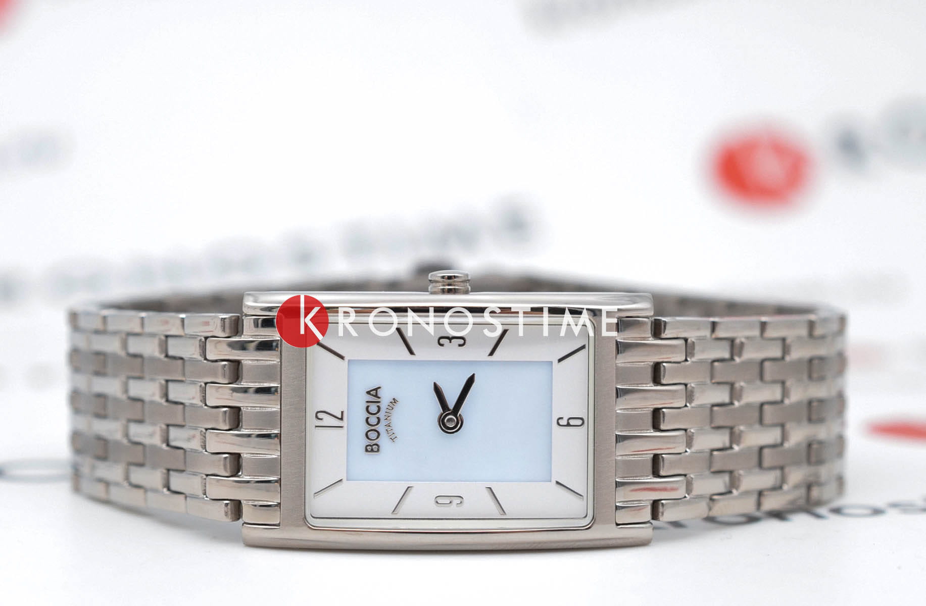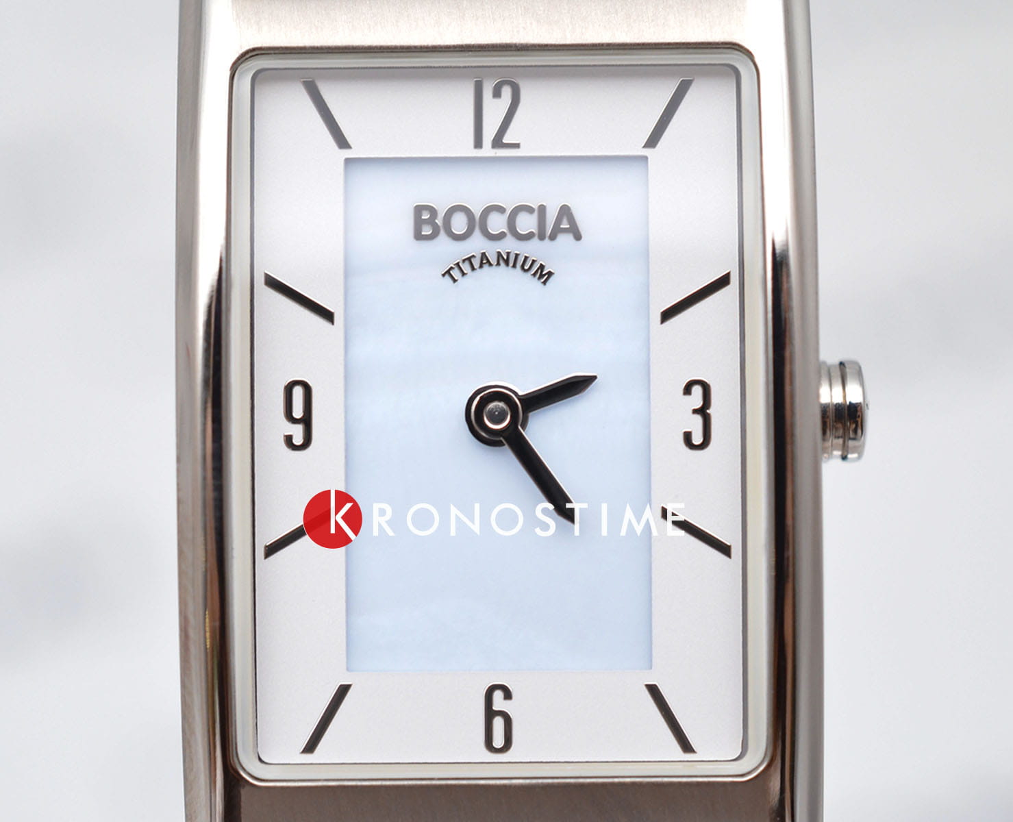 Женские наручные часы Boccia Titanium 3212-07 с надёжным кварцевым механизмом. Минеральное стеклоМинеральное стеклоМинеральное стекло представляет собой искусственно выращенный минерал кварца. Такое стекло отличается особой устойчивостью к повреждениям и царапинам. Уступает по некоторым качествам сапфировому стеклу. устойчивое к мелким механическим повреждениям. Корпус и браслет часов изготовлен из титана. Класс водозащиты: 50 метров, позволит защитить корпус от случайных брызг или капель дождя. Титановый браслет на раскладной застёжкеРаскладная застёжкаТакой тип застёжки используется только на браслетах из металла. Она никогда не раскрывается полностью, происходит разделение на 2 и более частей. Раскладывающая застёжка снизит вероятность потери часов к минимуму..