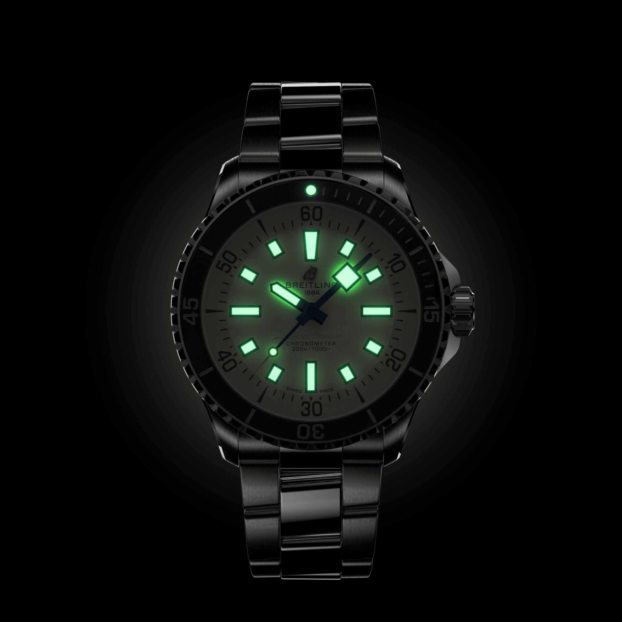 Мужские водонепроницаемые швейцарские часы Breitling Superocean Automatic 42 A17375E71G1A1, механический механизм (автоматический калибр) с высокой точностью. Сапфировое стеклоСапфировое стеклоПрочный и надёжный материал из кристалла сапфира синтетического происхождения, характеризующийся особой твёрдостью и устойчивостью к царапинам и повреждениям. устойчивое к появлению царапин, обладающее высокой прозрачностью. Класс водозащиты: 300 метров, позволит плавать, нырять и заниматься другими водными видами спорта. Корпус часов изготовлен из стали. Стальной браслет с раскладной застёжкойРаскладная застёжкаТакой тип застёжки используется только на браслетах из металла. Она никогда не раскрывается полностью, происходит разделение на 2 и более частей. Раскладывающая застёжка снизит вероятность потери часов к минимуму.. Стрелки и метки с люминесцентным покрытиемЛюминесцентное покрытиеПозволяет считывать показания времени в темноте. Производители наносят на стрелки, часовые индексы, безель или поверхность циферблата светонакопительный состав, дающий холодное свечение.. Широкие стрелки и индексы с люминесцентным покрытиемЛюминесцентное покрытиеПозволяет считывать показания времени в темноте. Производители наносят на стрелки, часовые индексы, безель или поверхность циферблата светонакопительный состав, дающий холодное свечение. обеспечивают легкую читаемость под водой. Вращающийся стальной безельБезельВнешний ободок, закрепляющий стекло. В спортивных часах так называется поворотное кольцо с делениями на циферблате, выполняет роль таймера – замеряет отрезки времени на шкале. Неподвижный безель – элемент декора. Однонаправленно вращающийся безель на дайверских часах позволяет фиксировать моменты погружения и выныривания на поверхность. с люминесцентным покрытиемЛюминесцентное покрытиеПозволяет считывать показания времени в темноте. Производители наносят на стрелки, часовые индексы, безель или поверхность циферблата светонакопительный состав, дающий холодное свечение. Superluminova из нержавеющей стали и керамики, защищенный от царапин, никогда не изнашивается и не выцветает.