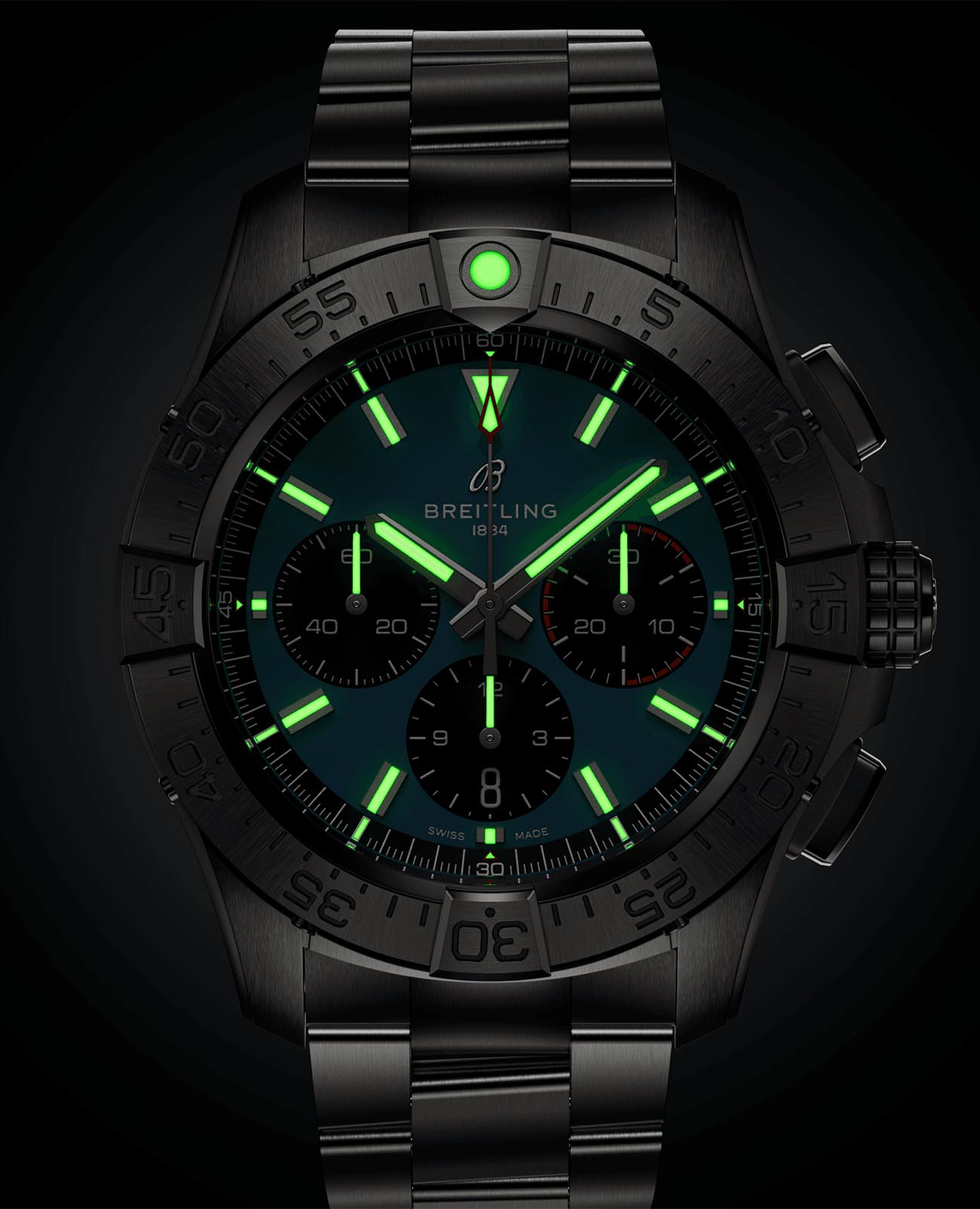 Мужские наручные часы c хронографомХронографФункция позволяет измерять отрезки времени с особой точностью: часы, минуты, секунды. Верным признаком хронографа является наличие на циферблате 3 дополнительных окошек-счётчиков. Breitling Avenger B01 Chronograph 44 AB0147101C1A1 с надёжным автоматическим механизмом. Корпус часов изготовлен из нержавеющей стали. Сапфировое стеклоСапфировое стеклоПрочный и надёжный материал из кристалла сапфира синтетического происхождения, характеризующийся особой твёрдостью и устойчивостью к царапинам и повреждениям. с антибликовым покрытием, устойчивое к мелким механическим повреждениям. Стальной браслет с раскладной застёжкойРаскладная застёжкаТакой тип застёжки используется только на браслетах из металла. Она никогда не раскрывается полностью, происходит разделение на 2 и более частей. Раскладывающая застёжка снизит вероятность потери часов к минимуму.. Стрелки и метки с люминесцентным покрытиемЛюминесцентное покрытиеПозволяет считывать показания времени в темноте. Производители наносят на стрелки, часовые индексы, безель или поверхность циферблата светонакопительный состав, дающий холодное свечение.. Однонаправленный безельБезельВнешний ободок, закрепляющий стекло. В спортивных часах так называется поворотное кольцо с делениями на циферблате, выполняет роль таймера – замеряет отрезки времени на шкале. Неподвижный безель – элемент декора. Однонаправленно вращающийся безель на дайверских часах позволяет фиксировать моменты погружения и выныривания на поверхность.. Класс водозащиты: 300 метров, позволит плавать, нырять и заниматься другими водными видами спорта.