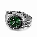 Вдохновленный оригинальным Superocean 1950-х годов, Superocean Heritage сочетает в себе культовые черты дизайна с современными нотками. Спортивный и элегантный Superocean Heritage является истинным воплощением морского стиля. Мужские швейцарские часы Breitling Superocean Heritage B20 Automatic 42 AB2010121L1A1, механический механизм (автоматический калибр) с высокой точностью. Сапфировое стеклоСапфировое стеклоПрочный и надёжный материал из кристалла сапфира синтетического происхождения, характеризующийся особой твёрдостью и устойчивостью к царапинам и повреждениям. устойчивое к появлению царапин, обладающее высокой прозрачностью. Класс водозащиты: 200 метров, позволит плавать, нырять и заниматься другими водными видами спорта. Корпус часов изготовлен из стали. Стальной браслет с раскладной застёжкойРаскладная застёжкаТакой тип застёжки используется только на браслетах из металла. Она никогда не раскрывается полностью, происходит разделение на 2 и более частей. Раскладывающая застёжка снизит вероятность потери часов к минимуму.. Часы Superocean Heritage, оснащенные культовыми стрелками треугольной формы, а также однонаправленным безелемБезельВнешний ободок, закрепляющий стекло. В спортивных часах так называется поворотное кольцо с делениями на циферблате, выполняет роль таймера – замеряет отрезки времени на шкале. Неподвижный безель – элемент декора. Однонаправленно вращающийся безель на дайверских часах позволяет фиксировать моменты погружения и выныривания на поверхность. с полированным керамическим кольцом, представляют собой элегантные часы для дайверов. Часы Superocean Heritage оснащены калибром Breitling Manufacture B20, сертифицированным COSCСертификат COSCОфициальный сертификат, подтверждающий то, что часы ходят с особо высокой точностью. Для получения документа часы подвергаются тестовым испытаниям, разработанным швейцарским институтом тестирования хронометров COSC. Допустимая норма для механических часов -4/+6 секунд в день, для кварцевых моделей +/- 0,07 секунд в день. хронометром на базе Tudor Caliber MT5612.