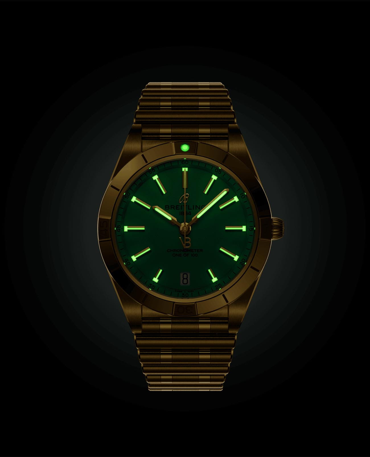 . Браслет на застёжке-бабочке с кнопкамиЗастёжка "бабочка"Такой вид застёжки дополняется предохранителями, помогающими избежать случайного раскрытия браслета. Обладают изящным исполнением. . Стрелки и метки с люминесцентным покрытиемЛюминесцентное покрытиеПозволяет считывать показания времени в темноте. Производители наносят на стрелки, часовые индексы, безель или поверхность циферблата светонакопительный состав, дающий холодное свечение.. Класс водозащиты: 100 метров, позволит плавать, нырять и заниматься другими водными видами спорта. Окошко даты находится в положении 6 часов.