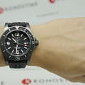 Класс водозащиты: 2000 метров, позволит плавать, нырять и заниматься другими водными видами спорта. Корпус часов изготовлен из нержавеющей стали с высокопрочным углеродным покрытием(DLC). Каучуковый ремешок черного цвета с раскладной застежкой из нержавеющей стали с DLC-покрытием.