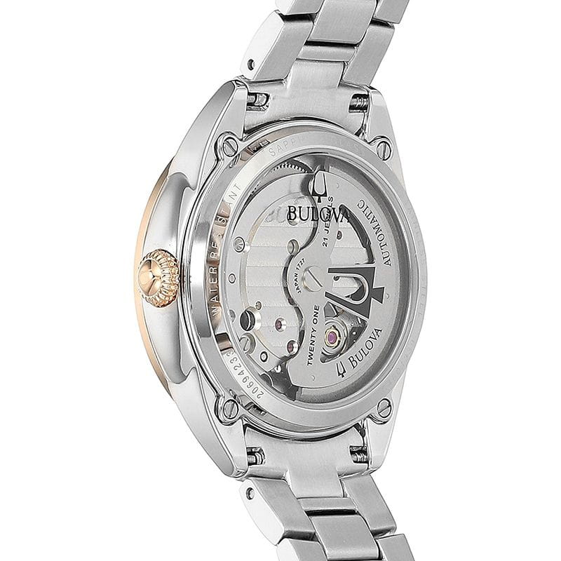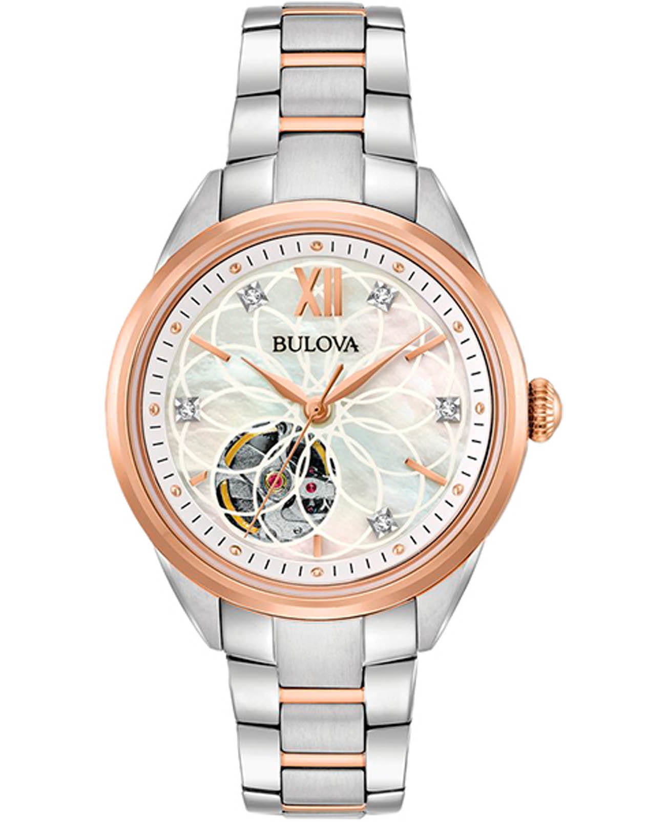 Женские механические часы с автоподзаводом Bulova Automatic Ladies 98P170 – отражающий идеальное сочетание современного дизайна, надёжности и функциональности. Элегантный облик станет превосходным завершением образа, наделив его индивидуальным характером. Корпус из нержавеющей стали с неподвижным безелемБезельВнешний ободок, закрепляющий стекло. В спортивных часах так называется поворотное кольцо с делениями на циферблате, выполняет роль таймера – замеряет отрезки времени на шкале. Неподвижный безель – элемент декора. Однонаправленно вращающийся безель на дайверских часах позволяет фиксировать моменты погружения и выныривания на поверхность. с IP-покрытиемIP-покрытиеМетод ионного напыления. Демонстрирует повышенную устойчивость к истиранию, окислению и химическим веществам. Под воздействием высокого давления и температуры около 1500°C молекулы металла надёжно соединяются с частицами корпуса часов. золотистого цвета, диаметром 34 мм идеально сбалансирован и элегантен. Защиту циферблата обеспечивает прочное сапфировое стеклоСапфировое стеклоПрочный и надёжный материал из кристалла сапфира синтетического происхождения, характеризующийся особой твёрдостью и устойчивостью к царапинам и повреждениям., гарантирующее четкость показаний. Циферблат из белого перламутра украшен золотистыми стрелками и бриллиантами, а также апертуром, открывающим вид на автоматический механизм. Браслет из нержавеющей стали с частичным IP-покрытиемIP-покрытиеМетод ионного напыления. Демонстрирует повышенную устойчивость к истиранию, окислению и химическим веществам. Под воздействием высокого давления и температуры около 1500°C молекулы металла надёжно соединяются с частицами корпуса часов. на застёжке-бабочке с кнопкамиЗастёжка "бабочка"Такой вид застёжки дополняется предохранителями, помогающими избежать случайного раскрытия браслета. Обладают изящным исполнением. обеспечивает комфортное ношение. Водозащита 30 метров позволит защитить корпус от случайных брызг или капель дождя. Эта модель – отличный выбор для тех, кто ищет сочетание стиля, качества и функциональности. Часы станут не только полезным аксессуаром, но и выразительным элементом вашего имиджа.