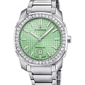 Женские наручные часы Candino Elegance C4756/2 с надёжным кварцевым механизмом. Корпус и браслет часов изготовлены из нержавеющей стали. Сапфировое стеклоСапфировое стеклоПрочный и надёжный материал из кристалла сапфира синтетического происхождения, характеризующийся особой твёрдостью и устойчивостью к царапинам и повреждениям. повышенной прозрачности, устойчивое к мелким механическим повреждениям. Стальной браслет на раскладной застёжкеРаскладная застёжкаТакой тип застёжки используется только на браслетах из металла. Она никогда не раскрывается полностью, происходит разделение на 2 и более частей. Раскладывающая застёжка снизит вероятность потери часов к минимуму.. Стрелки и метки с люминесцентным покрытиемЛюминесцентное покрытиеПозволяет считывать показания времени в темноте. Производители наносят на стрелки, часовые индексы, безель или поверхность циферблата светонакопительный состав, дающий холодное свечение.. БезельБезельВнешний ободок, закрепляющий стекло. В спортивных часах так называется поворотное кольцо с делениями на циферблате, выполняет роль таймера – замеряет отрезки времени на шкале. Неподвижный безель – элемент декора. Однонаправленно вращающийся безель на дайверских часах позволяет фиксировать моменты погружения и выныривания на поверхность. инкрустирован кристаллами. Класс водозащиты: 50 метров, позволит защитить корпус от случайных брызг или капель дождя. Окошко даты находится в положении 6 часов.