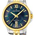 Женские наручные часы Candino C4767/7 из коллекции Lady Elegance сочетают в себе элегантный дизайн и надежность современных технологий. Модель обладает круглым корпусом диаметром 34 мм, изготовленным из нержавеющей стали, что обеспечивает высокую устойчивость к внешним воздействиям . Браслет выполнен из металла с частичным PVD-покрытиемPVDУльтратонкое покрытие наносится в технике вакуумного напыления, сочетает в себе нитрид титана особой прочности со слоем золота или оксида хрома. Несёт в себе декоративную или защитную функцию. и с раскладной застежкойРаскладная застёжкаТакой тип застёжки используется только на браслетах из металла. Она никогда не раскрывается полностью, происходит разделение на 2 и более частей. Раскладывающая застёжка снизит вероятность потери часов к минимуму., гарантирующей комфортное ношение и безопасность . Перламутровый синий циферблат оснащен окном даты, а стрелки и метки имеют люминесцентное покрытиеЛюминесцентное покрытиеПозволяет считывать показания времени в темноте. Производители наносят на стрелки, часовые индексы, безель или поверхность циферблата светонакопительный состав, дающий холодное свечение., обеспечивающее видимость в темноте . БезельБезельВнешний ободок, закрепляющий стекло. В спортивных часах так называется поворотное кольцо с делениями на циферблате, выполняет роль таймера – замеряет отрезки времени на шкале. Неподвижный безель – элемент декора. Однонаправленно вращающийся безель на дайверских часах позволяет фиксировать моменты погружения и выныривания на поверхность. с PVD-покрытиемPVDУльтратонкое покрытие наносится в технике вакуумного напыления, сочетает в себе нитрид титана особой прочности со слоем золота или оксида хрома. Несёт в себе декоративную или защитную функцию.. Для защиты используется сапфировое стеклоСапфировое стеклоПрочный и надёжный материал из кристалла сапфира синтетического происхождения, характеризующийся особой твёрдостью и устойчивостью к царапинам и повреждениям., которое противостоит появлению царапин и обеспечивает длительную сохранность внешнего вида часов . Часы работают на кварцевом механизме, что гарантирует точное время без необходимости подзаводки . Водонепроницаемость часов достигает 5 атмосфер (50 метров), что позволяет использовать их во время повседневных водных процедур, однако не рекомендуется для плавания или дайвинга .