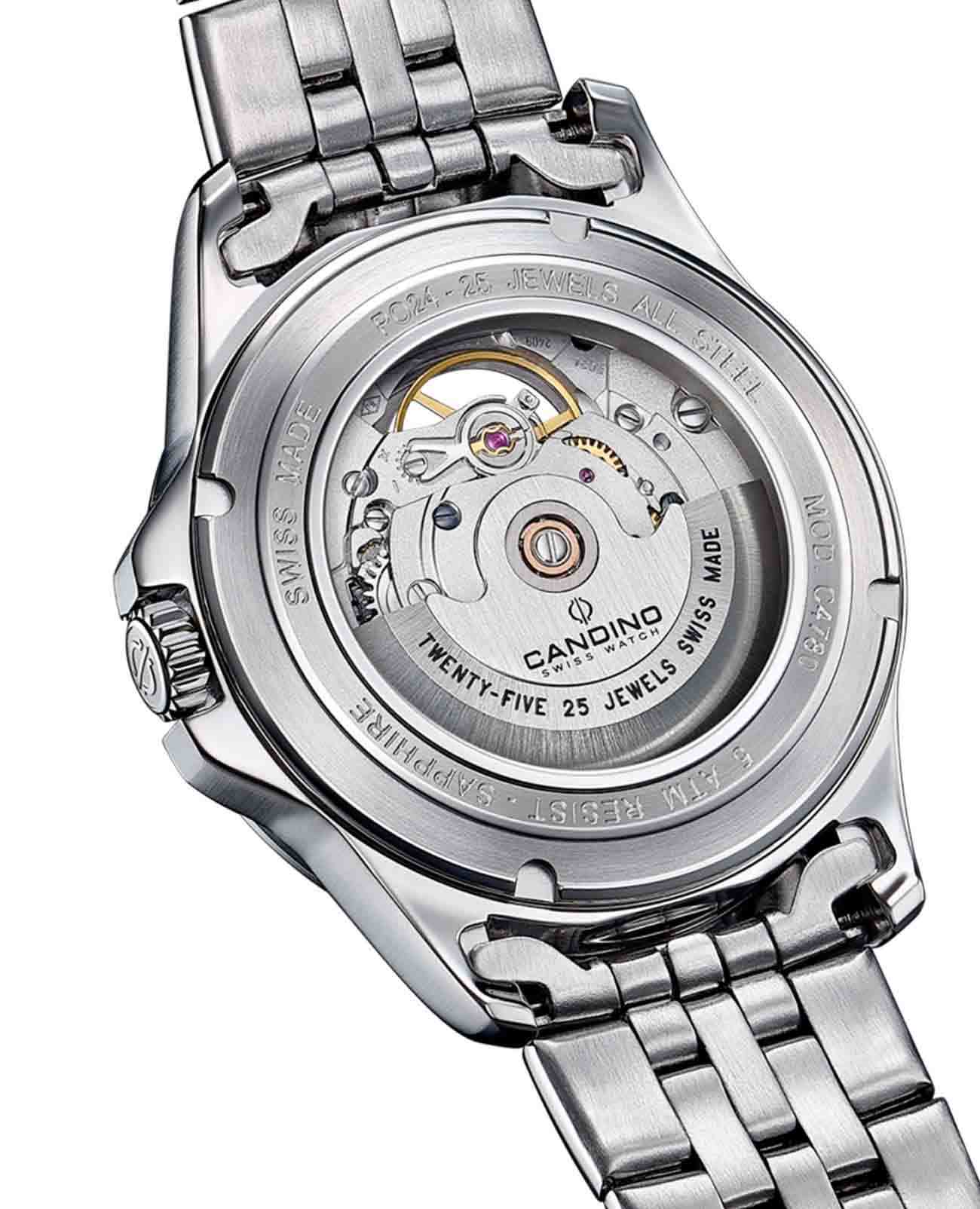 Мужские часы Candino C4780/1 из коллекции Automatic — воплощение изысканности и надежности. Эти часы оснащены автоматическим механизмом, который обеспечивает точное измерение времени без необходимости частой подзаводки. Элегантный белый циферблат с открытым механизмом, метками в виде штрихов и римскими цифрами VI и XII придают модели уникальный и современный вид, позволяя заглянуть в сердце механизма. Корпус диаметром 42 мм изготовлен из прочной нержавеющей стали, что гарантирует долговечность и устойчивость к внешним повреждениям. Сапфировое стеклоСапфировое стеклоПрочный и надёжный материал из кристалла сапфира синтетического происхождения, характеризующийся особой твёрдостью и устойчивостью к царапинам и повреждениям. обеспечивает высокую степень защиты от царапин и сохраняет первозданный вид часов на протяжении долгого времени. Стрелки и метки с люминесцентным покрытиемЛюминесцентное покрытиеПозволяет считывать показания времени в темноте. Производители наносят на стрелки, часовые индексы, безель или поверхность циферблата светонакопительный состав, дающий холодное свечение., что облегчает чтение времени даже в условиях слабого освещения. Стальной браслет на раскладной застёжкеРаскладная застёжкаТакой тип застёжки используется только на браслетах из металла. Она никогда не раскрывается полностью, происходит разделение на 2 и более частей. Раскладывающая застёжка снизит вероятность потери часов к минимуму. не только дополняет общую эстетику, но и обеспечивает комфортное ношение на протяжении всего дня. С водонепроницаемостью до 50 метров эти часы подходят для повседневного использования, выдерживая случайные контакты с водой, такие как дождь или мытьё рук. Эти часы станут идеальным аксессуаром для уверенного в себе мужчины, который ценит стиль и функциональность в каждом элементе своего образа.