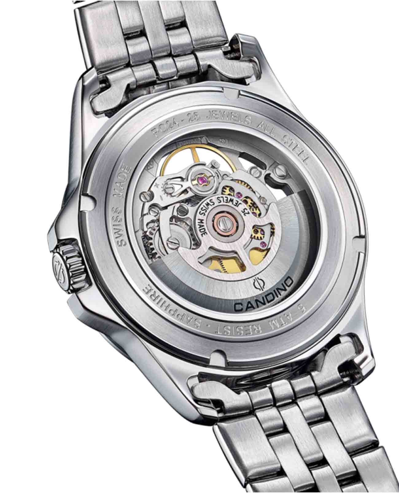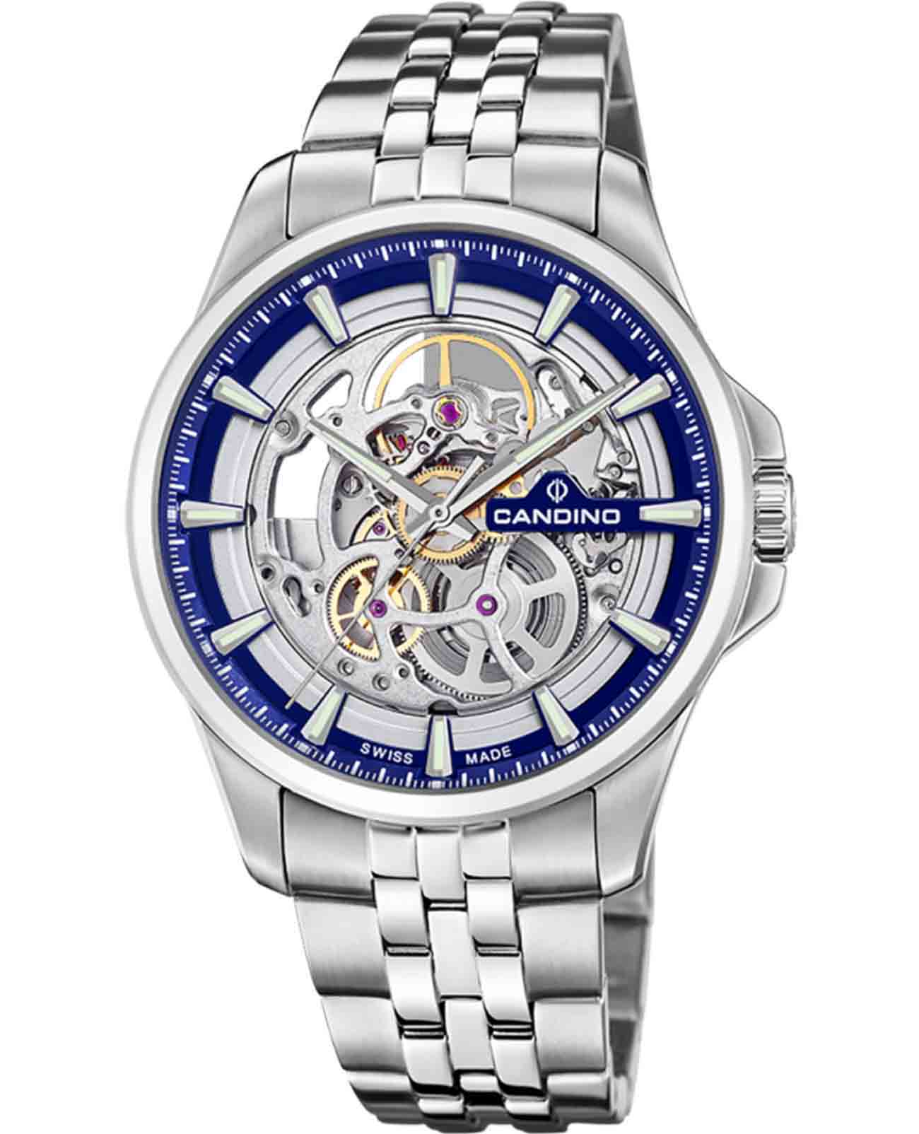 Мужские часы Candino C4781/1 из коллекции Automatic — воплощение изысканности и надежности. Эти часы оснащены автоматическим механизмом, который обеспечивает точное измерение времени без необходимости частой подзаводки. Элегантный серебристо-синий циферблат с открытым механизмом и метками в виде штрихов придают модели уникальный и современный вид, позволяя заглянуть в сердце механизма. Корпус диаметром 42 мм изготовлен из прочной нержавеющей стали, что гарантирует долговечность и устойчивость к внешним повреждениям. Сапфировое стеклоСапфировое стеклоПрочный и надёжный материал из кристалла сапфира синтетического происхождения, характеризующийся особой твёрдостью и устойчивостью к царапинам и повреждениям. обеспечивает высокую степень защиты от царапин и сохраняет первозданный вид часов на протяжении долгого времени. Стрелки и метки с люминесцентным покрытиемЛюминесцентное покрытиеПозволяет считывать показания времени в темноте. Производители наносят на стрелки, часовые индексы, безель или поверхность циферблата светонакопительный состав, дающий холодное свечение., что облегчает чтение времени даже в условиях слабого освещения. Стальной браслет на раскладной застёжкеРаскладная застёжкаТакой тип застёжки используется только на браслетах из металла. Она никогда не раскрывается полностью, происходит разделение на 2 и более частей. Раскладывающая застёжка снизит вероятность потери часов к минимуму. не только дополняет общую эстетику, но и обеспечивает комфортное ношение на протяжении всего дня. С водонепроницаемостью до 50 метров эти часы подходят для повседневного использования, выдерживая случайные контакты с водой, такие как дождь или мытьё рук. Эти часы станут идеальным аксессуаром для уверенного в себе мужчины, который ценит стиль и функциональность в каждом элементе своего образа.