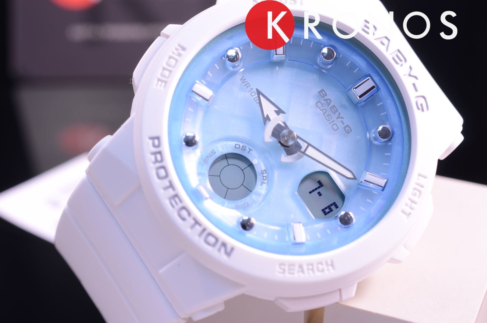 Женские японские часы Casio Baby-G BGA-250-7A1 из коллекции Baby-G в белом цвете дополнят образ на летнюю вечеринку.