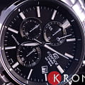 Кварцевый японский механизм Miyota. Точность хода не хуже -10 +15 сек./в месяц. Часы оснащены функцией хронографа. Циферблат чёрного цвета с контрастными индексами. Стрелки и индексы с светонакопительным нанесением. Корпус и браслет выполнены из нержавеющей стали. Сапфировое стекло устойчиво к появлению царапин. Водонепроницаемость 100М. В часах можно плавать. Степень водонепроницаемости не является величиной, эквивалентной функциональной рабочей глубине.