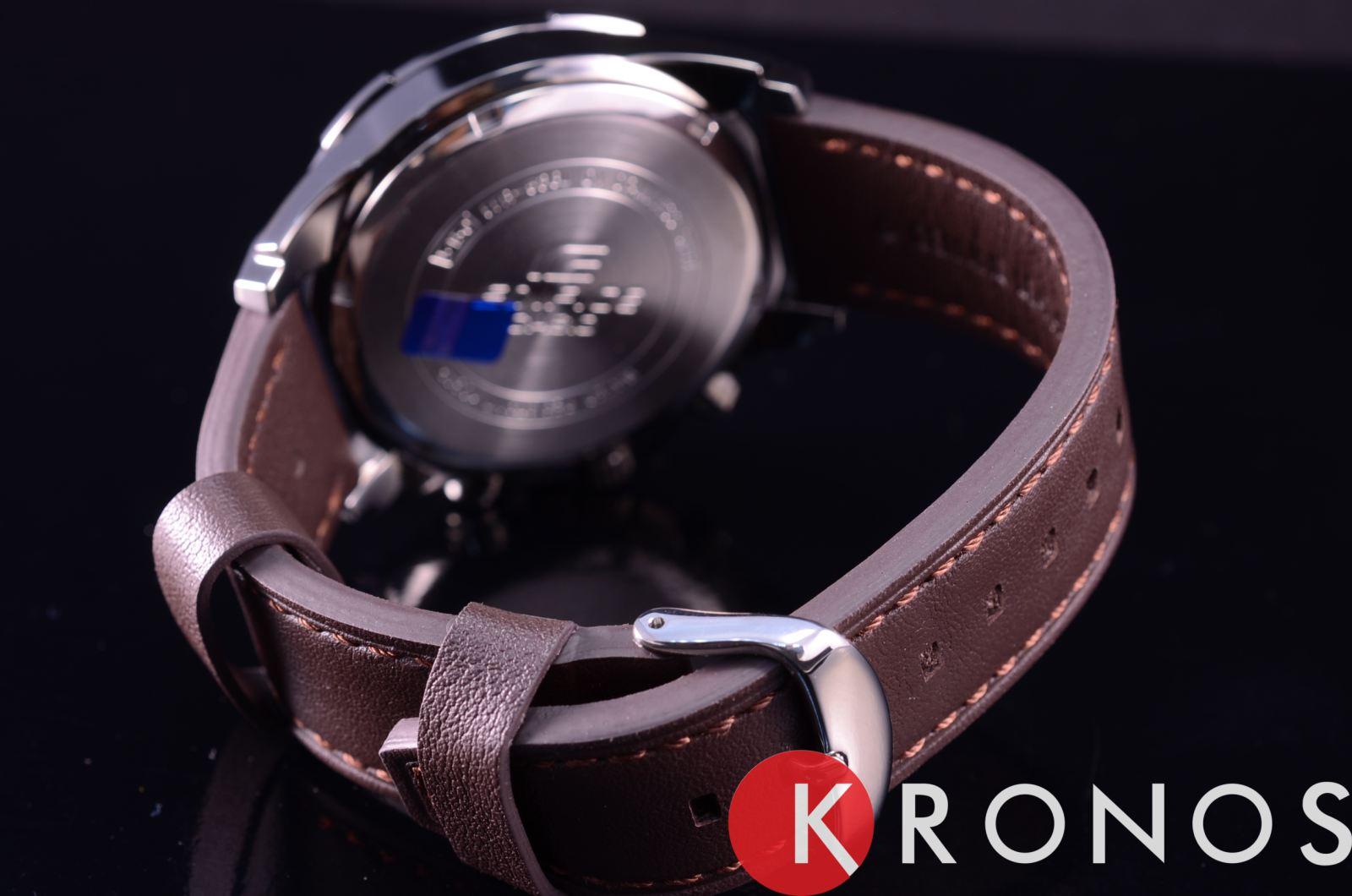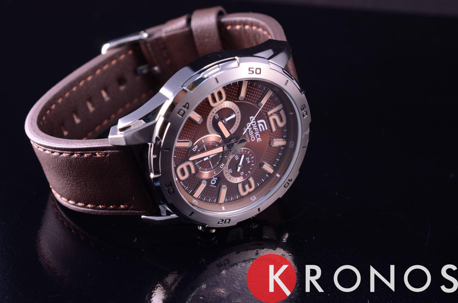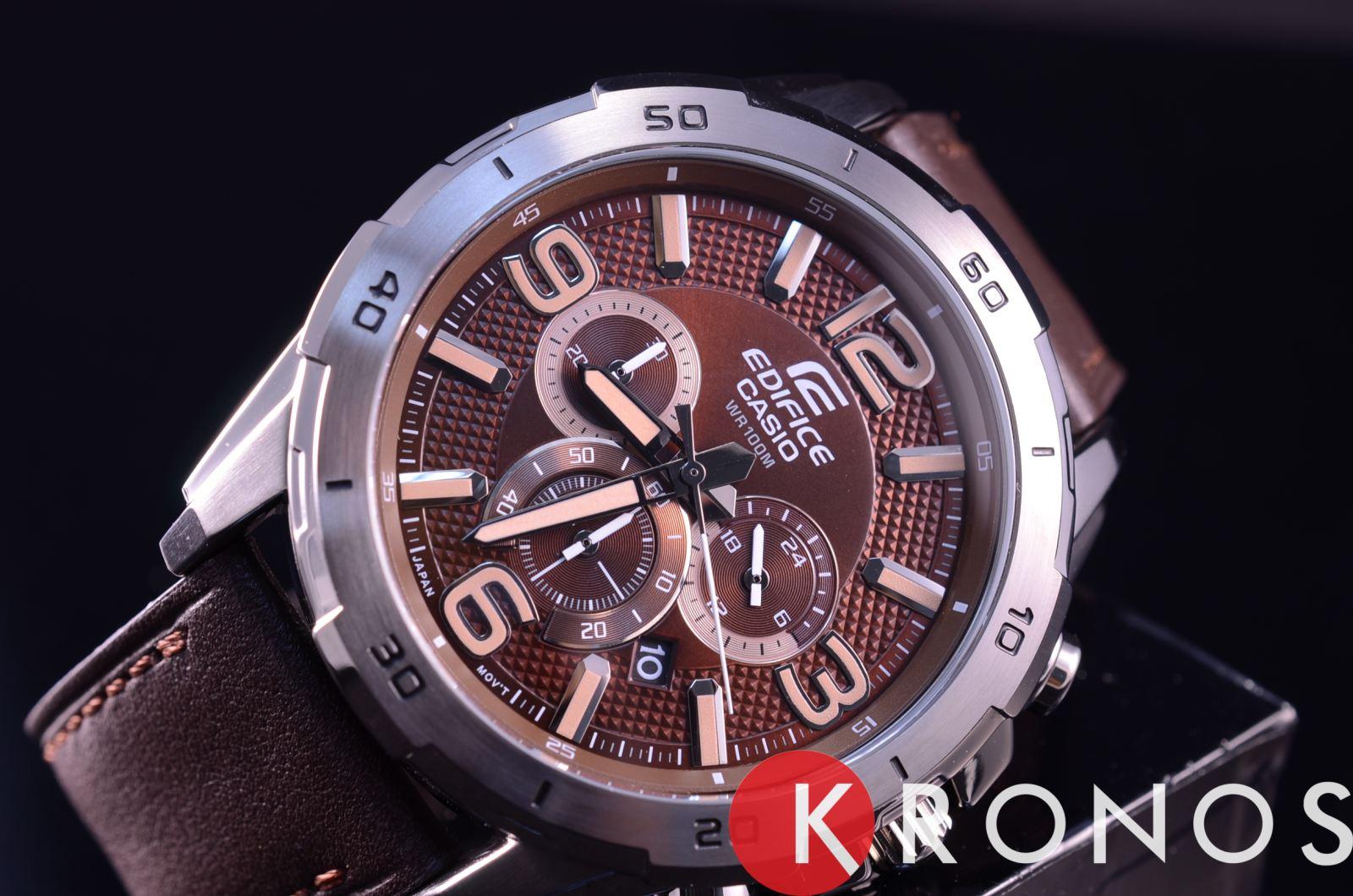 Мужские классические наручные часы Casio Edifice надежные и практичные. Кварцевый японский механизм Miyota. Точность хода не хуже -10 +15 сек./в месяц. Часы оснащены функцией хронографа. Циферблат коричневого цвета с контрастными индексами. Стрелки и индексы с светонакопительным нанесением. Корпус выполнен из нержавеющей стали с IP покрытием коричневого цвета. Ремешок из натуральной кожи, коричневого цвета. Минеральное стекло устойчиво к появлению царапин