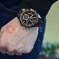 Кварцевый японский механизм Miyota. Точность хода не хуже -10 +15 сек./в месяц. Часы оснащены функцией хронографа, с точностью 1/10с и временем измерения 1ч. Циферблат коричневого цвета с контрастными, позолоченными элементами дизайна. Флюорисцентное напыление на стрелках и дисплее часов позволяет отчетливее видеть каждую цифру. Корпус выполнен из нержавеющей стали с частичным IP покрытием. Ремешок из натуральной кожи коричневого цвета. Минеральное стекло устойчиво к появлению царапин. Водонепроницаемость 100М. В часах можно плавать. Степень водонепроницаемости не является величиной, эквивалентной функциональной рабочей глубине.