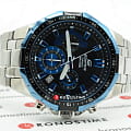 Спортивный аксессуар вызывает восхищение дерзким и брутальным характером, отсылающим нас к стилистике гоночных автомобилей. Динамичный тёмный циферблат с оригинальными счётчиками дополнен синими деталями. Противоударный корпусУдаропрочный корпусМеханизм заключён в корпус, выполненный из современных материалов, устойчивых к ударам, механическим повреждениям и падению с высоты: инновационный пластик, карбон, нержавеющая сталь, титан. и браслет выполнены из хирургической стали 316L, отличающейся долговечностью. Точность хода кварцевого механизма составляет +/- 30 секунд в месяц. Люминесцентная подсветкаЛюминесцентное покрытиеПозволяет считывать показания времени в темноте. Производители наносят на стрелки, часовые индексы, безель или поверхность циферблата светонакопительный состав, дающий холодное свечение.. Минеральное стекло. Частичное IP-покрытиеIP-покрытиеМетод ионного напыления. Демонстрирует повышенную устойчивость к истиранию, окислению и химическим веществам. Под воздействием высокого давления и температуры около 1500°C молекулы металла надёжно соединяются с частицами корпуса часов.. Завинчивающаяся задняя крышка. Заводная головка с системой защиты. Водостойкость 100 метров. ХронографХронографФункция позволяет измерять отрезки времени с особой точностью: часы, минуты, секунды. Верным признаком хронографа является наличие на циферблате 3 дополнительных окошек-счётчиков., секундомер, календарь. Габариты: 54,1 x 49,5 x 11,7 мм.