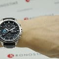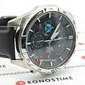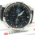 Спортивный аксессуар отличается динамичным циферблатом с большим количеством деталей, элементы голубых оттенков отлично выделяются на тёмном фоне. Ударопрочный корпусУдаропрочный корпусМеханизм заключён в корпус, выполненный из современных материалов, устойчивых к ударам, механическим повреждениям и падению с высоты: инновационный пластик, карбон, нержавеющая сталь, титан. выполнен из нержавеющей стали 316L, характеризующейся долговечностью. Точность хода кварцевого механизма составляет +/- 30 секунд в месяц. Люминесцентная подсветкаЛюминесцентное покрытиеПозволяет считывать показания времени в темноте. Производители наносят на стрелки, часовые индексы, безель или поверхность циферблата светонакопительный состав, дающий холодное свечение.. Минеральное стекло. Ремешок из натуральной кожи. Завинчивающаяся задняя крышка. Водостойкость 10 бар. ХронографХронографФункция позволяет измерять отрезки времени с особой точностью: часы, минуты, секунды. Верным признаком хронографа является наличие на циферблате 3 дополнительных окошек-счётчиков., секундомер, календарь. Габариты: 53,5 x 48,7 x 12,6 мм.