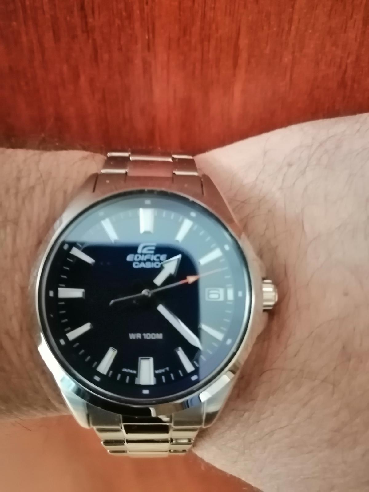 Брендовый аксессуар из серии EFV-100 будет отлично смотреться как с деловым костюмом, так и с повседневной одеждой. Синий циферблат дополнен контрастными стрелками и метками, секундная стрелка облегчает читаемость показателей благодаря яркому наконечнику. Минималистичные часы выполнены из нержавеющей стали 316L, материал отличается долговечностью и устойчивостью к царапинам. Кварцевый механизм работает от батарейки, срок её службы составит 3 года. Люминесцентная подсветка NeobriteЛюминесцентное покрытиеПозволяет считывать показания времени в темноте. Производители наносят на стрелки, часовые индексы, безель или поверхность циферблата светонакопительный состав, дающий холодное свечение.. Водостойкость 10 бар. Минеральное стекло. Прямоугольная апертура даты. Габариты: 48 x 42 x 10,9 мм.