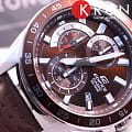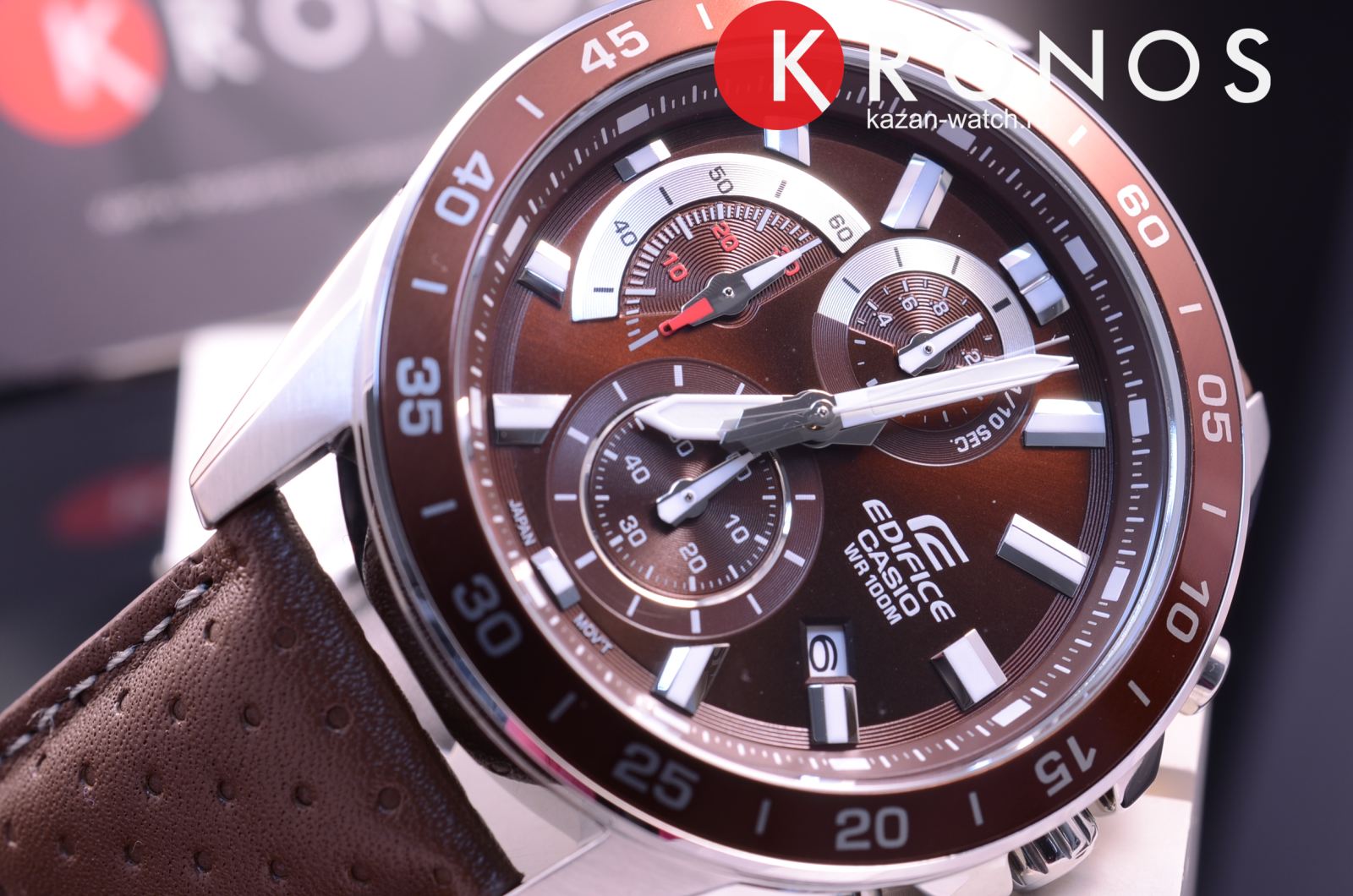 Компания Casio выпустила новинку Edifice — стильный хронограф из серии EFV-550. Окошки секундомера очень напоминают приборную доску автомобиля. В серии пять моделей разных цветов, причем две со стальным браслетом и три с кожаным ремешком. Текстура этого ремешка сделана “в горошек” и смотрится очень стильно. Часы водонепроницаемые, обладают секундомером, отображают дату.