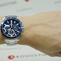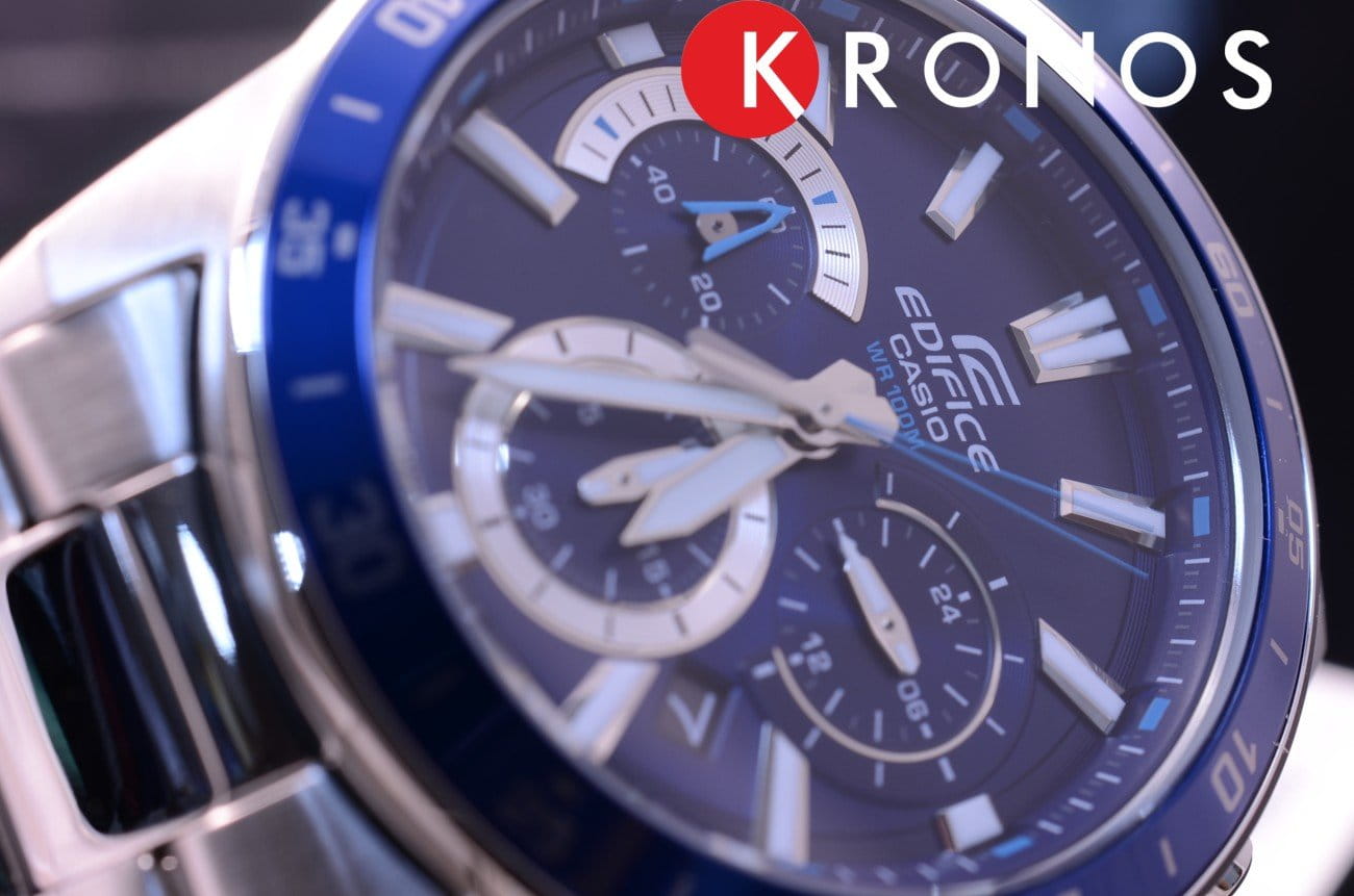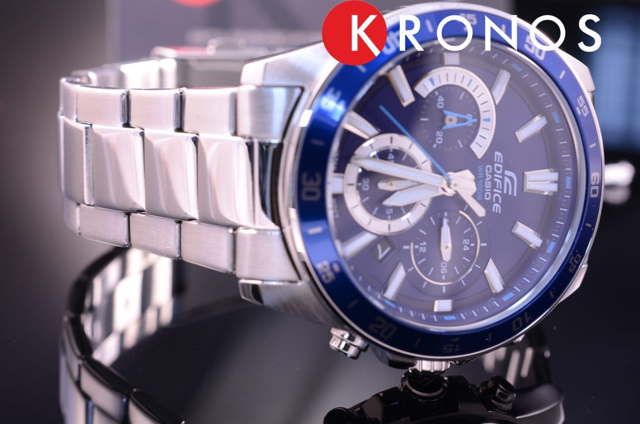 Японские мужские часы-хронографХронографФункция позволяет измерять отрезки времени с особой точностью: часы, минуты, секунды. Верным признаком хронографа является наличие на циферблате 3 дополнительных окошек-счётчиков. Casio Edifice EFV-570D-2A. Минеральное стеклоМинеральное стеклоМинеральное стекло представляет собой искусственно выращенный минерал кварца. Такое стекло отличается особой устойчивостью к повреждениям и царапинам. Уступает по некоторым качествам сапфировому стеклу. устойчивое к появлению царапин, обладающее высокой прозрачностью. Копрус часов изготовлен из нержавеющей стали. БезельБезельВнешний ободок, закрепляющий стекло. В спортивных часах так называется поворотное кольцо с делениями на циферблате, выполняет роль таймера – замеряет отрезки времени на шкале. Неподвижный безель – элемент декора. Однонаправленно вращающийся безель на дайверских часах позволяет фиксировать моменты погружения и выныривания на поверхность. из стали с IP-покрытиемIP-покрытиеМетод ионного напыления. Демонстрирует повышенную устойчивость к истиранию, окислению и химическим веществам. Под воздействием высокого давления и температуры около 1500°C молекулы металла надёжно соединяются с частицами корпуса часов.. Светодиодная автоподсветка NeobriteПодсветка NeobriteИспользование светонакопительных составов на основе сульфида цинка или алюмината стронция, яркий свет можно наблюдать на протяжении 6-10 часов после «зарядки» часов около источника света. - при повороте часов в сторону лица подсветка дисплея осуществляется автоматически. Настраиваемое послесвечение 1,5 или 3сек. Записная книжка на 30 ячеек памяти для записи имен и телефонных номеров, каждая запись может включать в себя текст из 8 букв и 16 цифр. СекундомерСекундомерСекундоме́р — прибор, способный измерять интервалы времени с точностью до долей секунды. с точностью измерения 1/100 секунды и измерением до 23 часов 59 минут 59,99 cек. ТаймерТаймерОтсчитывает секунды в обратном направлении в заданном интервале времени. обратного отсчета (диапазон времени 24 часа), автоматический календарь, 12/24 отображение времени. Мировое времяМировое время Полезное часовое усложнение, отображающее время в основных городах и известных областях по всему миру, оно связано с часовыми поясами, удобно для путешественников и бизнесменов. – 30 городов (29 часовых поясов). 5 будильниковБудильникБуди́льник — часы, в заданный момент времени подающие звуковой, световой и/или в редких случаях другой сигнал., один с функцией Snooze, ежечасный сигнал. Класс водозащиты: 100 метров, позволит плавать, нырять и заниматься другими водными видами спорта. Стальной браслет на раскладной застёжкеРаскладная застёжкаТакой тип застёжки используется только на браслетах из металла. Она никогда не раскрывается полностью, происходит разделение на 2 и более частей. Раскладывающая застёжка снизит вероятность потери часов к минимуму..