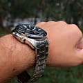 Тёмный циферблат напоминает о приборной панели автомобиля, расставлены золотистые цветовые акценты. Необычное исполнение переплетается с использованием современных материалов, благодаря чему часы сохраняют отменную точность хода и безупречный внешний вид на долгие годы. Не подведёт и батарейка, питающая энергией кварцевый механизм, она рассчитана на 10 лет службы. Закаленное минеральное стекло. Водонепроницаемость 100 метров. Люминесцентная подсветкаЛюминесцентное покрытиеПозволяет считывать показания времени в темноте. Производители наносят на стрелки, часовые индексы, безель или поверхность циферблата светонакопительный состав, дающий холодное свечение.. Нержавеющая сталь 316L. Алюминиевый безельБезельВнешний ободок, закрепляющий стекло. В спортивных часах так называется поворотное кольцо с делениями на циферблате, выполняет роль таймера – замеряет отрезки времени на шкале. Неподвижный безель – элемент декора. Однонаправленно вращающийся безель на дайверских часах позволяет фиксировать моменты погружения и выныривания на поверхность.. Секундомер, календарь, будильник, записная книжка на 30 записей. Габариты: 51,6 x 46,6 x 14,2 мм.