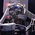 Общее исполнение аксессуара выдержано в автомобильной стилистике, тёмный циферблат отличается оригинальным расположением счётчиков. Наручные часы оснащены технологией BluetoothBluetoothСовременная технология, позволяющая синхронизировать часы с телефоном и переносить данные. Часы с Bluetooth расширяют возможности вашего смартфона и делают его использование ещё более удобным. с низким потреблением энергии, позволяющей часам считывать информацию с интернет-сервера точного времени и обеспечивать абсолютную точность времени. Питание происходит за счёт солнечной батареи - . Водонепроницаемость 100 метров. Минеральное стекло. Люминесцентная подсветкаЛюминесцентное покрытиеПозволяет считывать показания времени в темноте. Производители наносят на стрелки, часовые индексы, безель или поверхность циферблата светонакопительный состав, дающий холодное свечение.. Наличие авиарежима. Функции: уведомление о полученных сообщениях по электронной почте, поиск телефона, отображение числа и дня недели, секундомер, будильник, тахиметрТахиметрРазмеченная шкала, располагается на ободке или безеле часов. Тахиметр позволяет рассчитать скорость на определённом участке пути, расстояние измеряется в километрах или милях., расчёт средней скорости пройденного маршрута. Габариты: 52 x 48,1 x 14,2 мм.