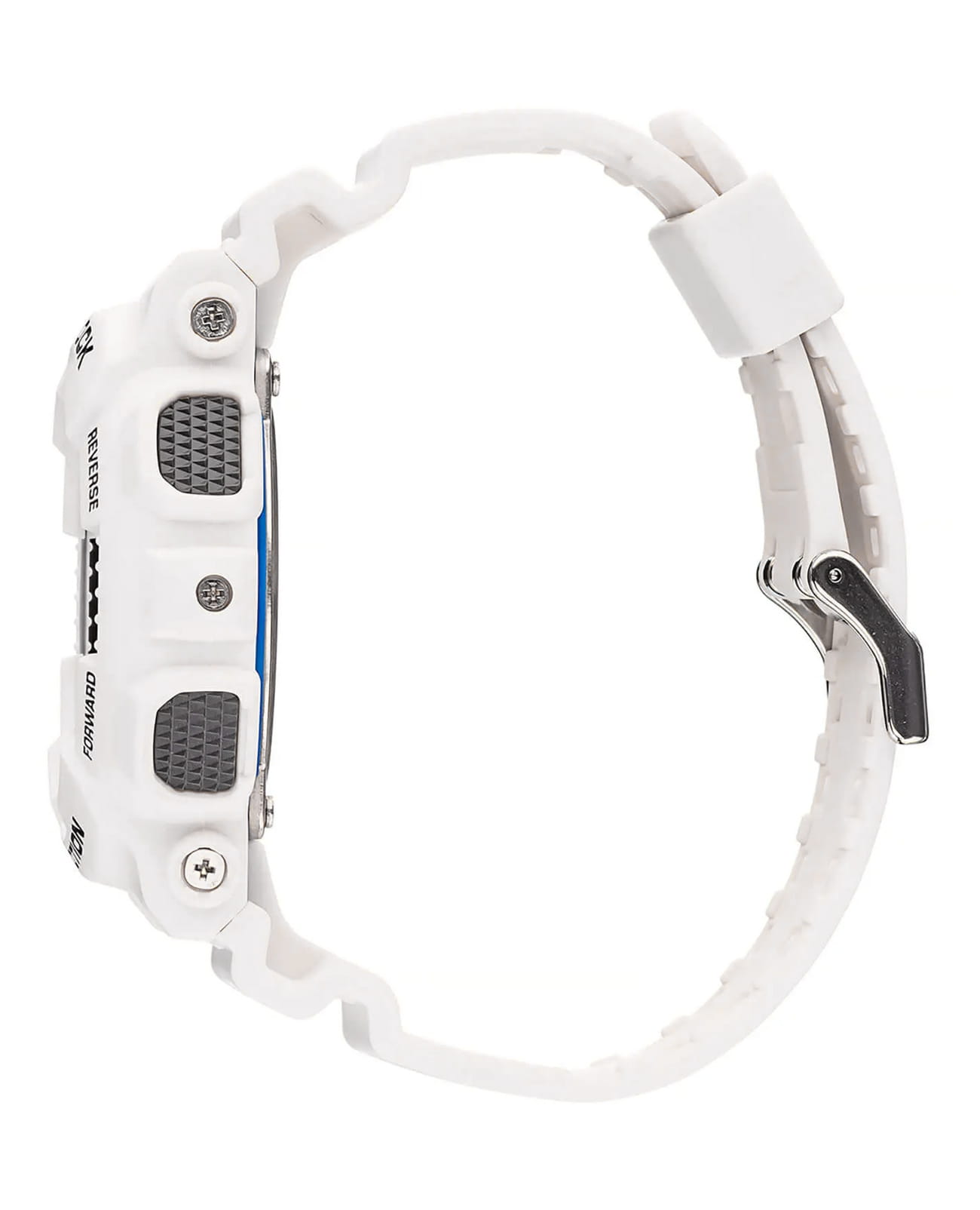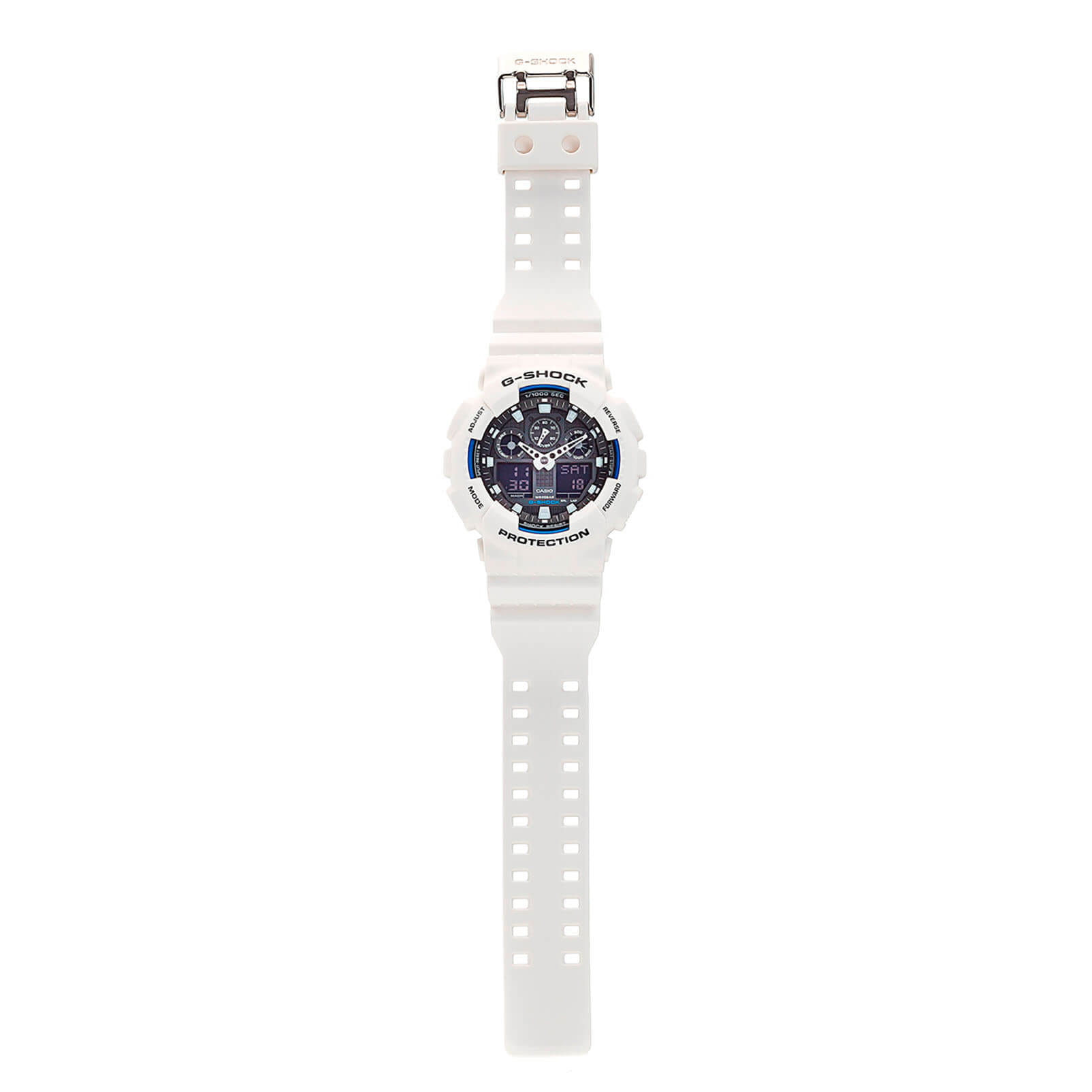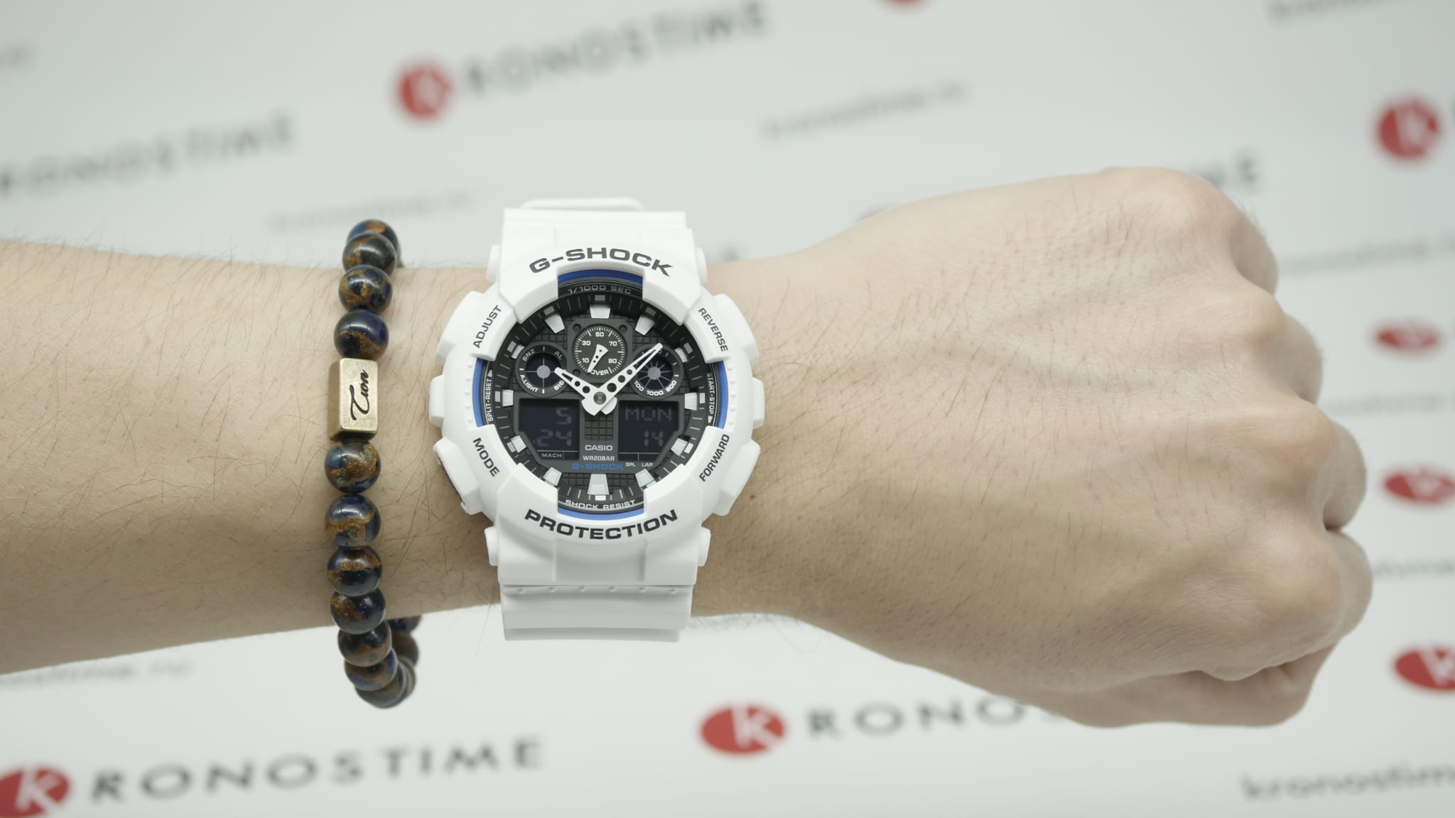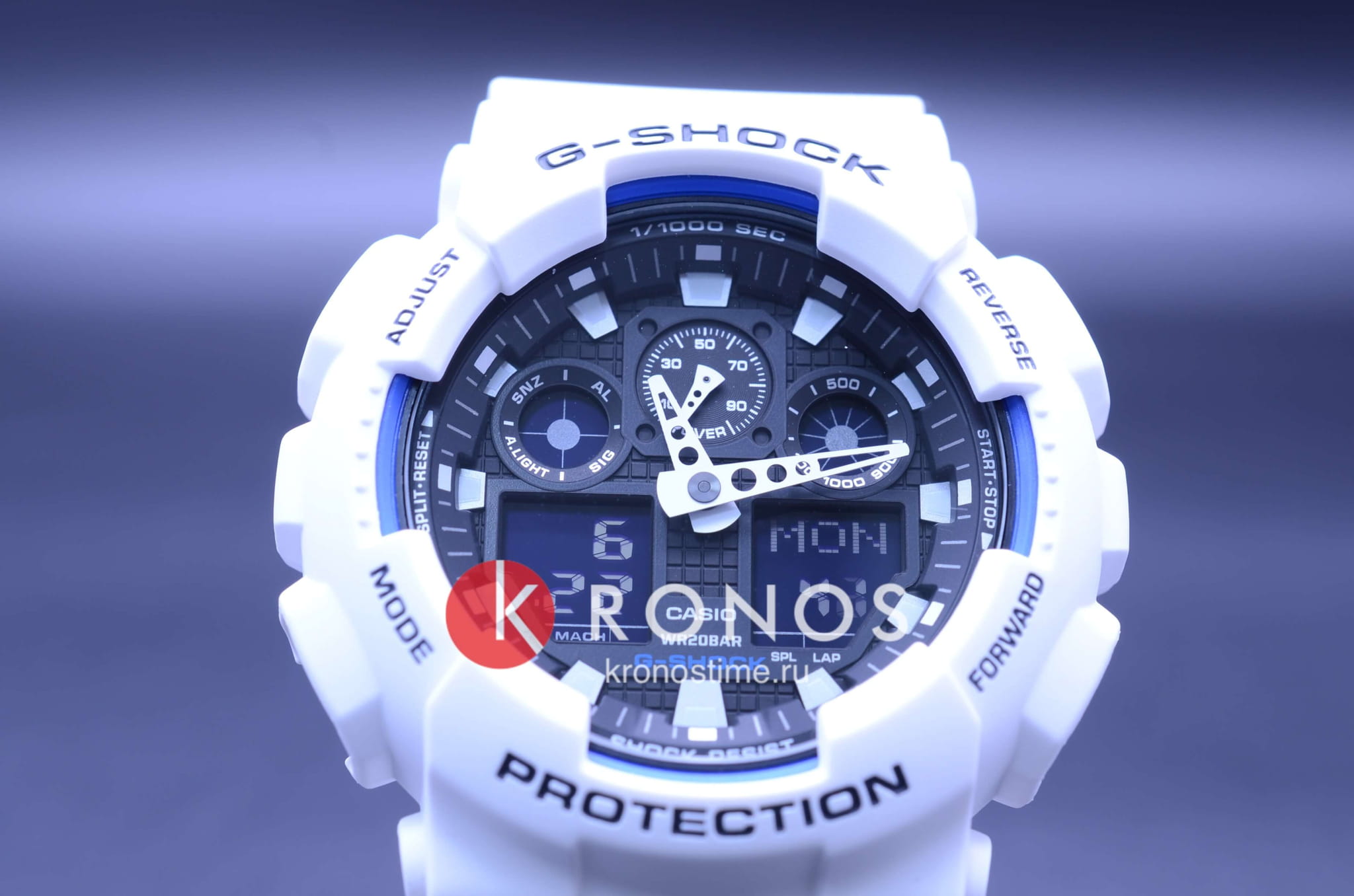 Японские мужские часы-хронографХронографФункция позволяет измерять отрезки времени с особой точностью: часы, минуты, секунды. Верным признаком хронографа является наличие на циферблате 3 дополнительных окошек-счётчиков. Casio G-Shock GA-100B-7A из коллекции G-Shock. Противоударный пластиковый корпус с карбоновыми волокнами более прочный и, в то же время, более легкий. Минеральное стеклоМинеральное стеклоМинеральное стекло представляет собой искусственно выращенный минерал кварца. Такое стекло отличается особой устойчивостью к повреждениям и царапинам. Уступает по некоторым качествам сапфировому стеклу. устойчивое к появлению царапин, обладающее высокой прозрачностью. Ударопрочный корпусУдаропрочный корпусМеханизм заключён в корпус, выполненный из современных материалов, устойчивых к ударам, механическим повреждениям и падению с высоты: инновационный пластик, карбон, нержавеющая сталь, титан. защищает механизм от ударов и вибрации. Многокомпонентный циферблат состоит из цифровых окошек указателей числа и дня недели, а также индикатора режима работы часов, который расположен в позиции 9 часов и выполнен в виде пропеллера. Светодиодная подсветкаСветодиодная подсветкаСветодиодная или LED-подсветка обеспечивает появление яркого холодного свечения за счёт LED-элементов - маленьких лампочек. Они потребляют минимальное количество энергии, чаще всего можно встретить 1 светодиод, в нижней части циферблата. освещает весь циферблат. Мировое времяМировое время Полезное часовое усложнение, отображающее время в основных городах и известных областях по всему миру, оно связано с часовыми поясами, удобно для путешественников и бизнесменов. – 48 городов (29 часовых поясов). СекундомерСекундомерСекундоме́р — прибор, способный измерять интервалы времени с точностью до долей секунды. с точностью измерения 1/100 секунды и измерением до 23 часов 59 минут 59,99 cек. ТаймерТаймерОтсчитывает секунды в обратном направлении в заданном интервале времени. обратного отсчета (диапазон времени 24 часа), автоматический календарь, 12/24 отображение времени. 5 будильниковБудильникБуди́льник — часы, в заданный момент времени подающие звуковой, световой и/или в редких случаях другой сигнал., ежечасный сигнал. Класс водозащиты: 200 метров, позволит плавать, нырять и заниматься другими водными видами спорта. Ремешок из полимерного материала на стандартной застежке.