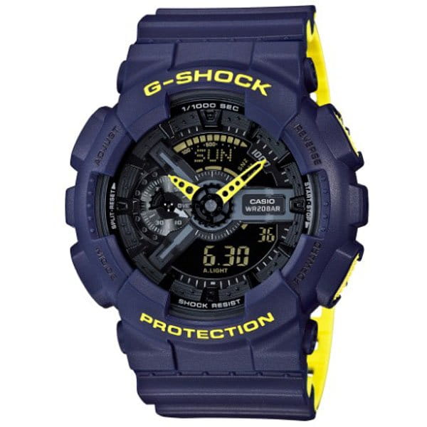 Ударопрочные японские наручные мужские часы в яркой сине-желтой расцветке. Круглый корпус и браслет часов выполнены из высокоустойчивого полимерного пластика. Водонепроницаемость 20 ATM. Минеральное стекло, устойчивое к появлению царапин. В часах присутствуют такие дополнительные функции как защита от магнитных полей, секундомер, таймер обратного отсчета, автоподсветка, мировое время, вечный календарь и будильник (5 установок).