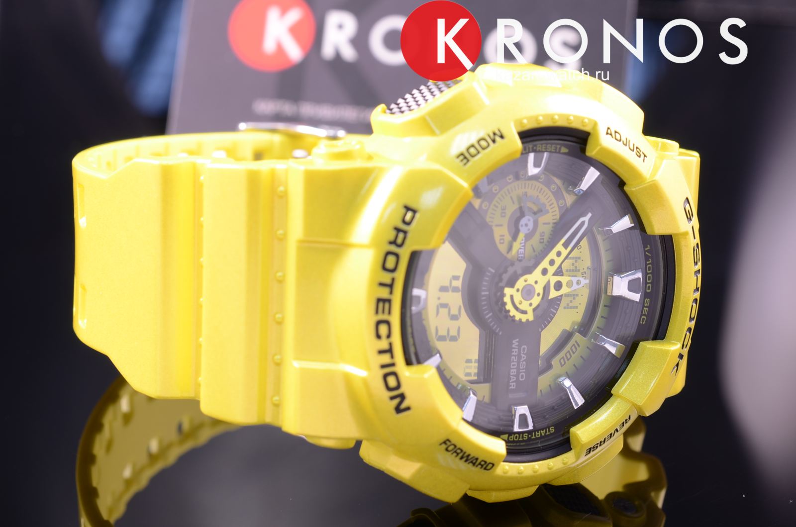 Casio GA-110NM-9A яркие современные часы в ударопрочном корпусе. Минеральное стекло, устойчивое к появлению царапин. Корпус и браслет часов выполнены из полимерного пластика яркого, гламурного желтого цвета. Часы GA-110NM-9A снабжены множеством дополнительных функций - секундомер, таймер обратного отсчета, календарь, термометр, компас, сверхмощная автоматическая LED-подсветка с автоматической регулируемой автоматизацией. Ежечасный сигнал, повтор сигнала будильника, мировое время. Водонепроницаемость часов до 200 метров. Магнитоустойчивые.  Элемент питания CR1220, точность хода +\- 15 сек.в месяц.