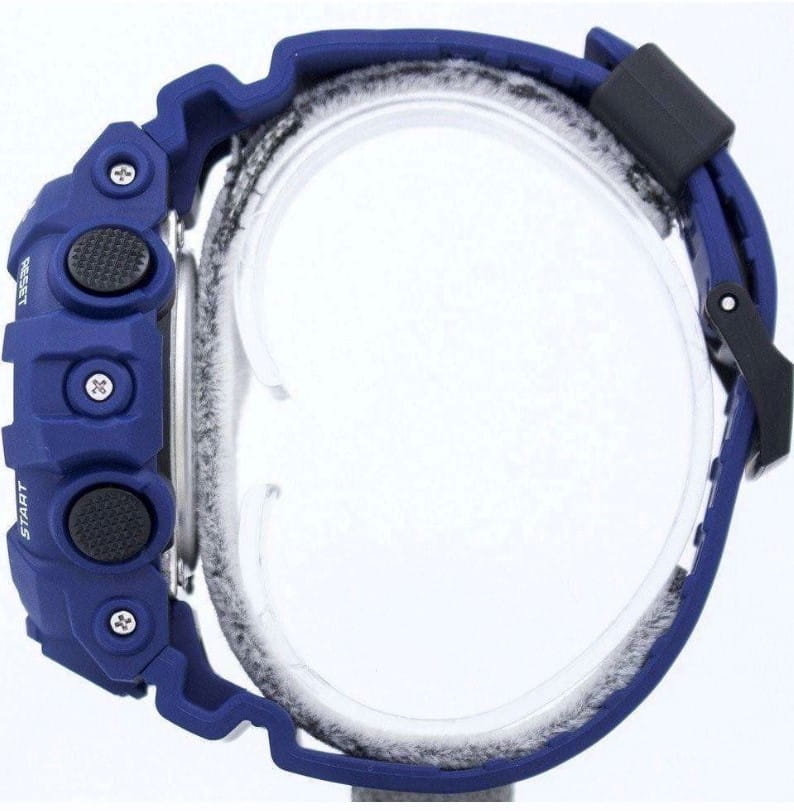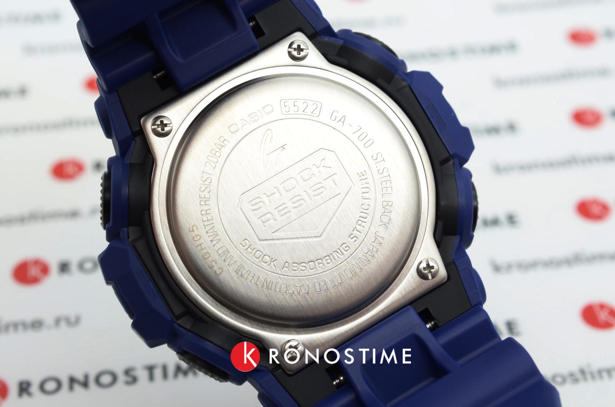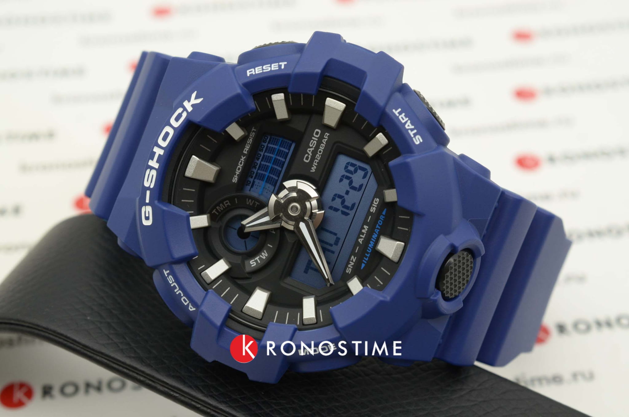 Японские мужские часы Casio G-Shock GA-700-2A из линейки G-Shock - результат воплощения современных технологий и привлекательного дизайна. Аналого-цифровые часы имеют ярко-синее исполнение, циферблат дополнен контрастными элементами, аксессуар является выгодным завершением образа. Модель имеет противоударный корпусУдаропрочный корпусМеханизм заключён в корпус, выполненный из современных материалов, устойчивых к ударам, механическим повреждениям и падению с высоты: инновационный пластик, карбон, нержавеющая сталь, титан. из полимерного пластика, устойчивого к максимальным нагрузкам. Японский кварцевый механизм. Аккумулятор рассчитан на 5 лет работы. Включение и отключение звука кнопок. Светодиодная LED-подсветкаСветодиодная подсветкаСветодиодная или LED-подсветка обеспечивает появление яркого холодного свечения за счёт LED-элементов - маленьких лампочек. Они потребляют минимальное количество энергии, чаще всего можно встретить 1 светодиод, в нижней части циферблата., кнопка активации для удобства вынесена в нижнюю часть. Водозащита 200 метров. Минеральное стеклоМинеральное стеклоМинеральное стекло представляет собой искусственно выращенный минерал кварца. Такое стекло отличается особой устойчивостью к повреждениям и царапинам. Уступает по некоторым качествам сапфировому стеклу.. Функция мирового времениМировое время Полезное часовое усложнение, отображающее время в основных городах и известных областях по всему миру, оно связано с часовыми поясами, удобно для путешественников и бизнесменов. , таймерТаймерОтсчитывает секунды в обратном направлении в заданном интервале времени. с автоповтором, UTCUTCВсемирное кординационное время, не имеющее привязки к географическому положению Гринвича, основывается на атомном отсчёте времени. Регулировка времени осуществляется более точно, чем устаревшее GMT.