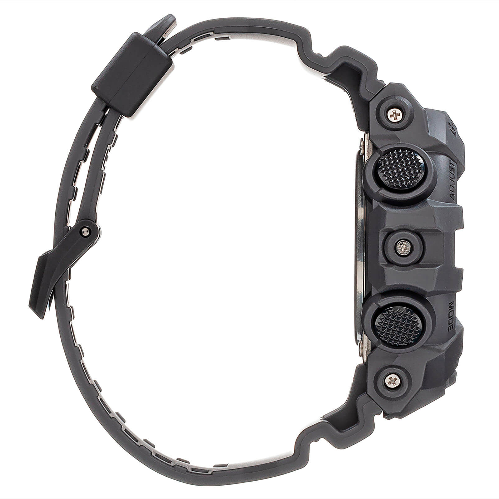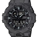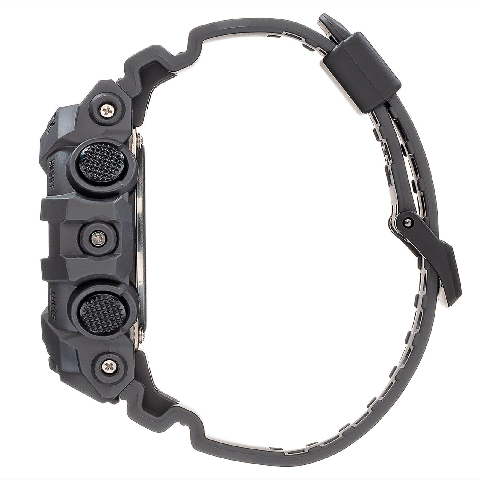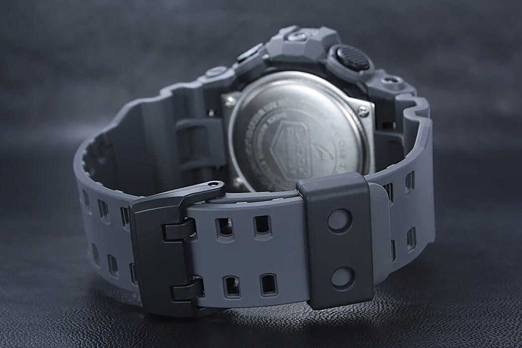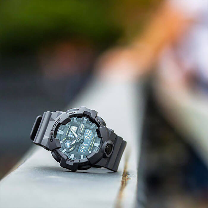 Аналого-цифровая модель в лаконичном сером исполнении идеально подойдёт для ношения в любой ситуации, гармонично смотрится контрастный циферблат с крупными элементами дизайна. Часы в стиле милитари из серии GA-700 обладают противоударным корпусомУдаропрочный корпусМеханизм заключён в корпус, выполненный из современных материалов, устойчивых к ударам, механическим повреждениям и падению с высоты: инновационный пластик, карбон, нержавеющая сталь, титан. из полимерного пластика, стойко переносящим любые механические повреждения. Батарейка рассчитана на 5 лет службы. Водонепроницаемость до 20 бар. Минеральное стекло устойчиво к появлению царапин. ЛюминесцентнаяЛюминесцентное покрытиеПозволяет считывать показания времени в темноте. Производители наносят на стрелки, часовые индексы, безель или поверхность циферблата светонакопительный состав, дающий холодное свечение. и светодиодная подсветкаСветодиодная подсветкаСветодиодная или LED-подсветка обеспечивает появление яркого холодного свечения за счёт LED-элементов - маленьких лампочек. Они потребляют минимальное количество энергии, чаще всего можно встретить 1 светодиод, в нижней части циферблата.. Дополнительные возможности: функция перемещения стрелок, включение и выключение звука кнопок, секундомер, мировое времяМировое время Полезное часовое усложнение, отображающее время в основных городах и известных областях по всему миру, оно связано с часовыми поясами, удобно для путешественников и бизнесменов. , таймер с автоповтором, UTCUTCВсемирное кординационное время, не имеющее привязки к географическому положению Гринвича, основывается на атомном отсчёте времени. Регулировка времени осуществляется более точно, чем устаревшее GMT.